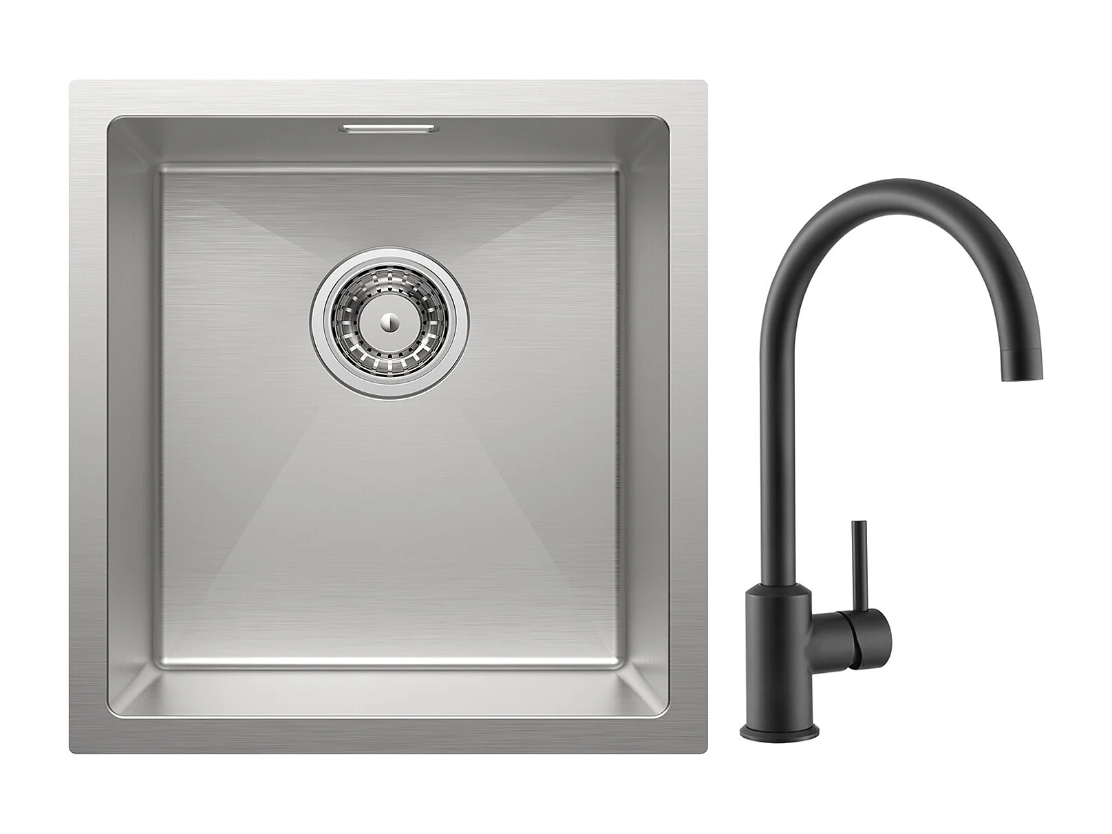 Fregadero de cocina Cecipa MAX 1 seno 40x44x19 cm Fregadero de acero inoxidable cepillado + Mezclador de cocina de acero inoxidable negro