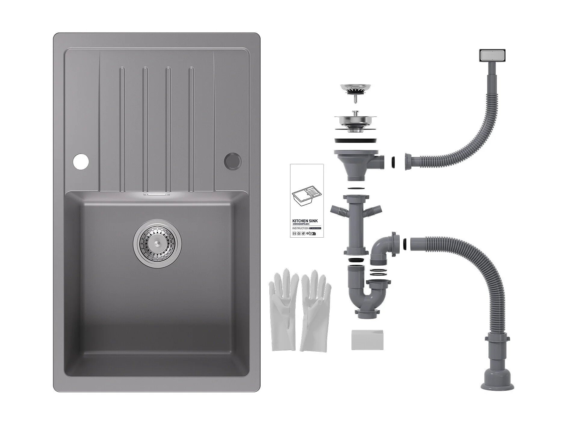 Fregadero de Cocina Cecipa MAX con Escurridor Fregadero de 1 Seno en Cuarzo y Resina 78x45cm Fregadero de Cocina de Granito Gris!!!