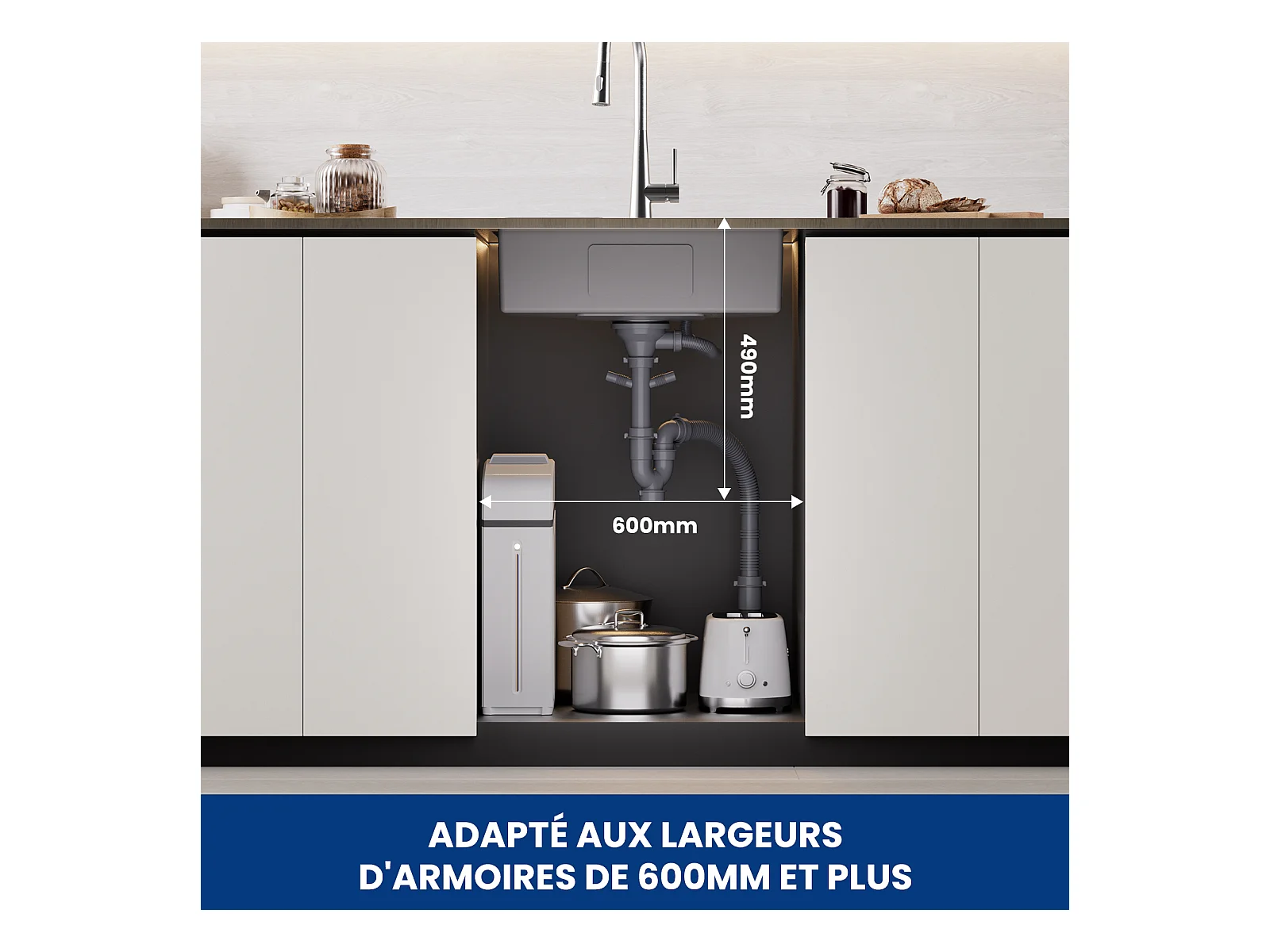 Cecipa max Fregadero de 1 seno de acero inoxidable cepillado 60×45×18 cm - Fregadero de 1 seno con escurridor - Fregadero de cocina de gran capacidad, modelo UE