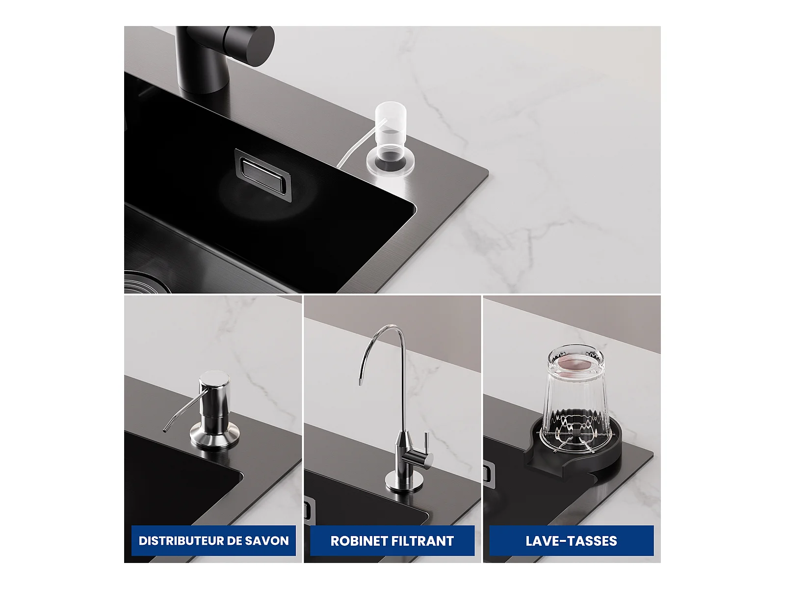 Fregadero de Cocina 1 Seno 60×45×18CM Fregadero de Acero Inoxidable Negro con Cesta de Drenaje + Mezclador de Cocina para Sistema de ósmosis