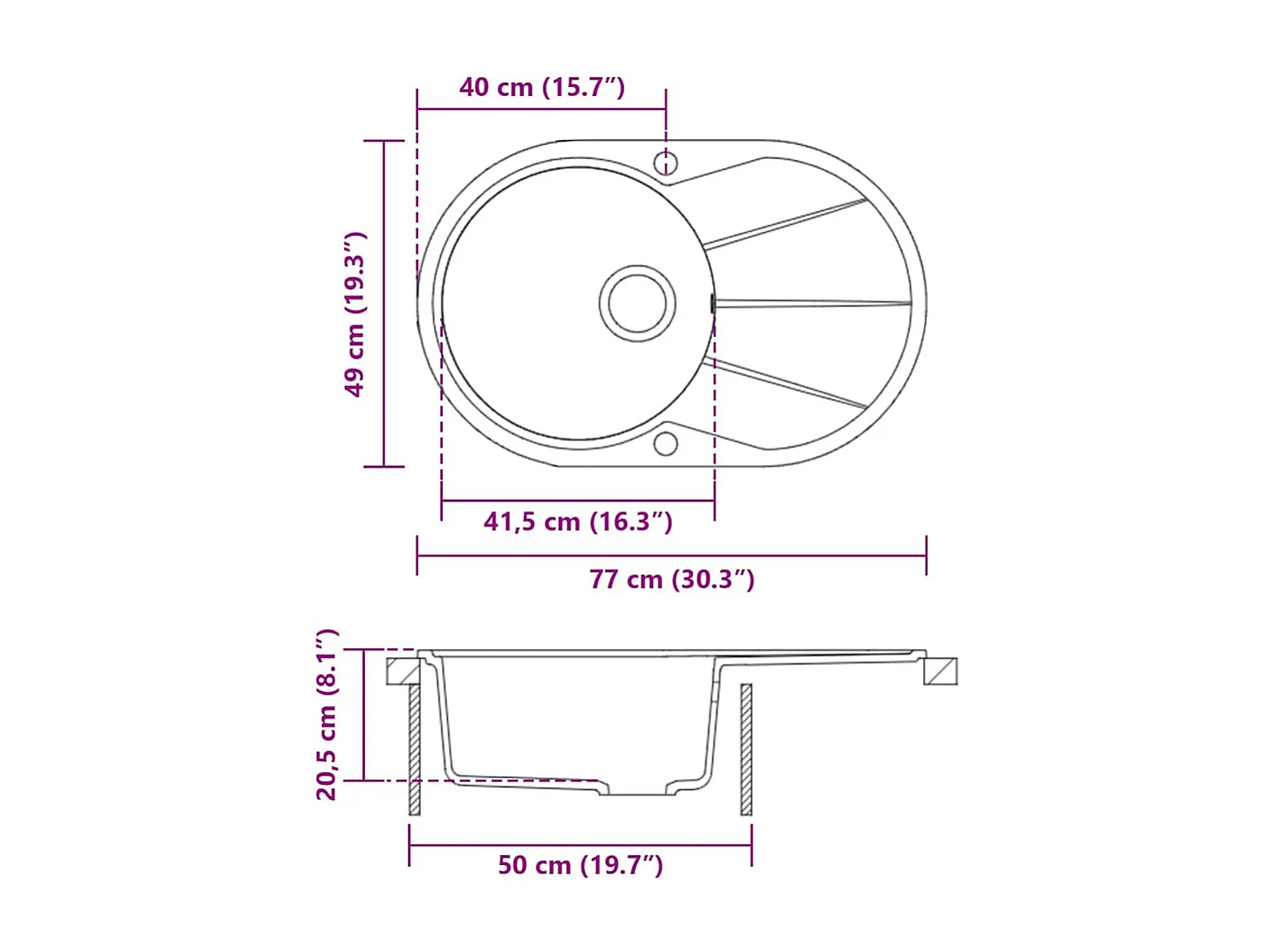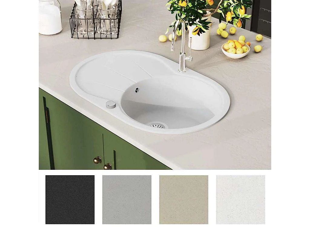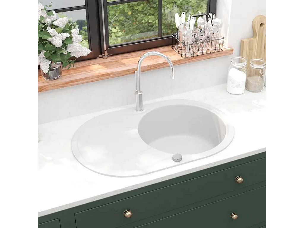 Fregadero de cocina de granito de un seno ovalado blanco