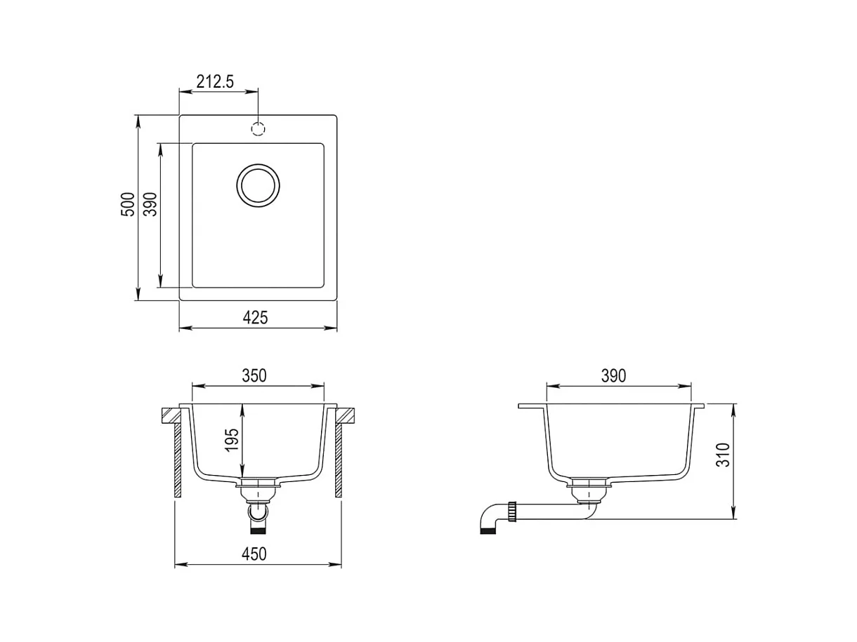 Fregadero de cocina lavabo individual 42 x 46 cm granito beige 02_0002353