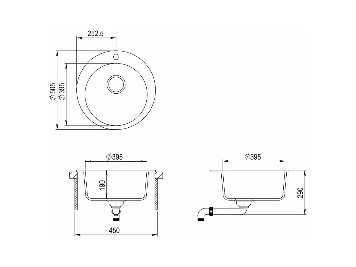 Fregadero de cocina de granito, seno individual, redondo, gris, decoración de la cocina del hogar 02_0002326