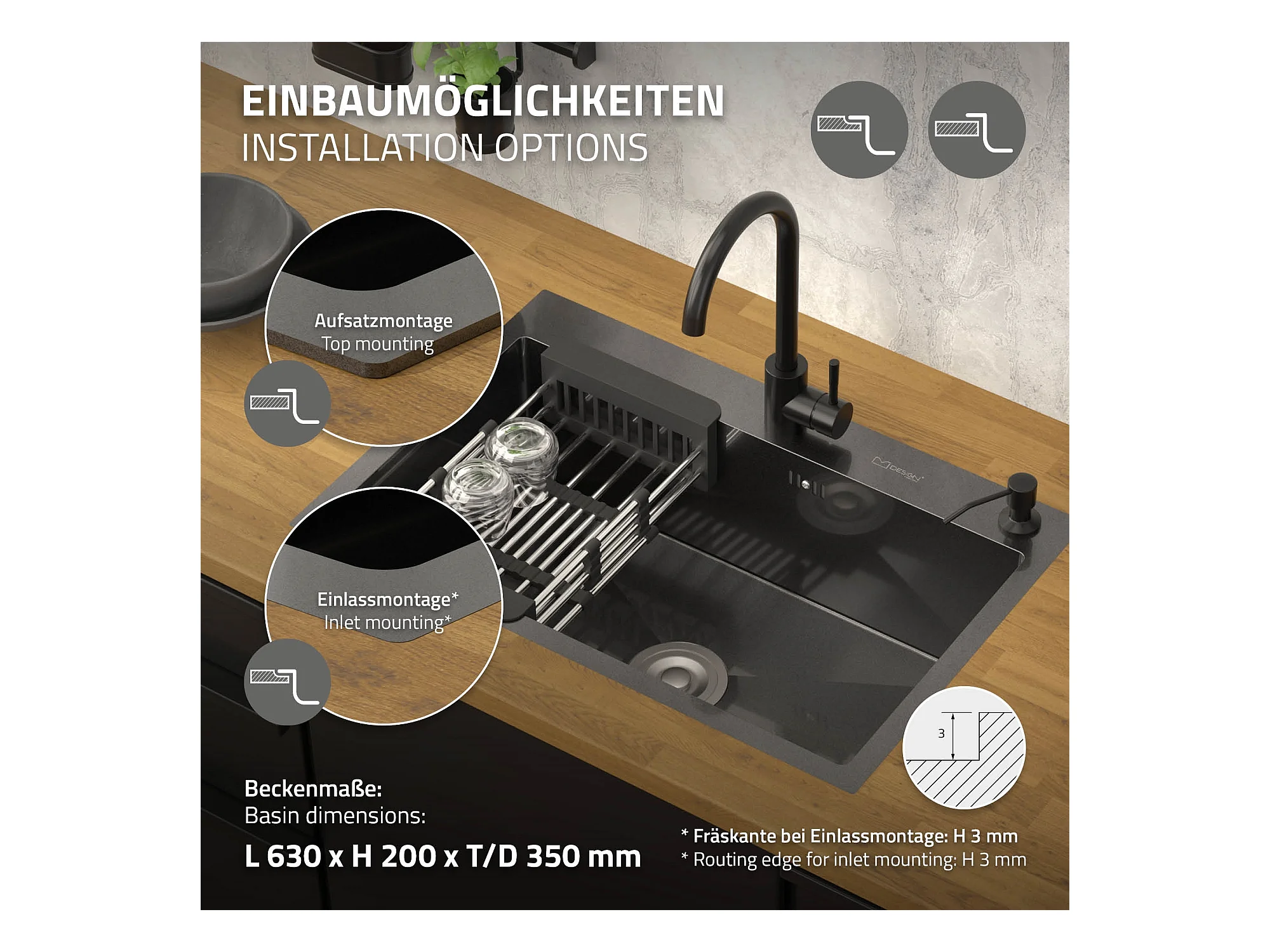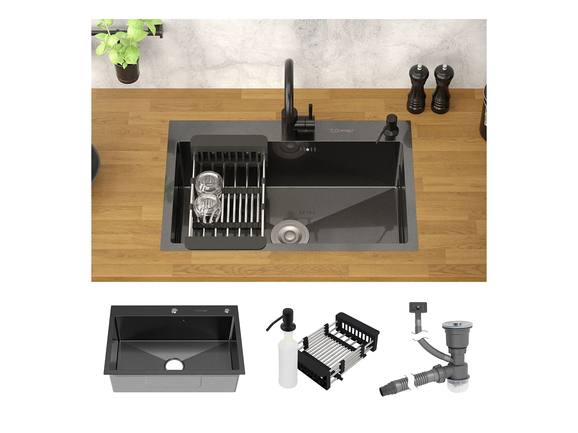 Fregadero de cocina hecho a mano con colador de acero inoxidable negro 02_0002369