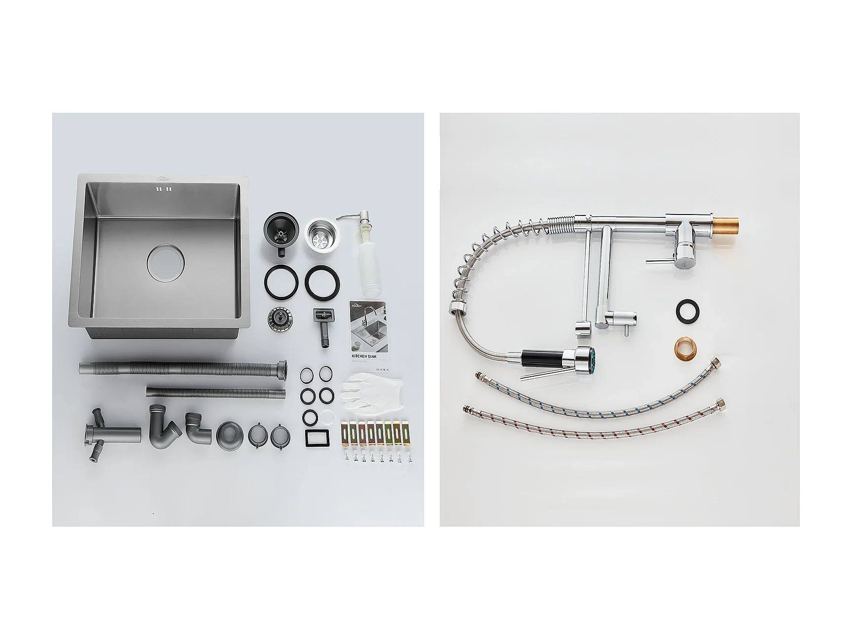 Fregadero de Cocina Inox 1 Bandeja 50*43*18CM con Dispensador de Jabón+Rifo de cocina retráctil de dos funciones, cromado