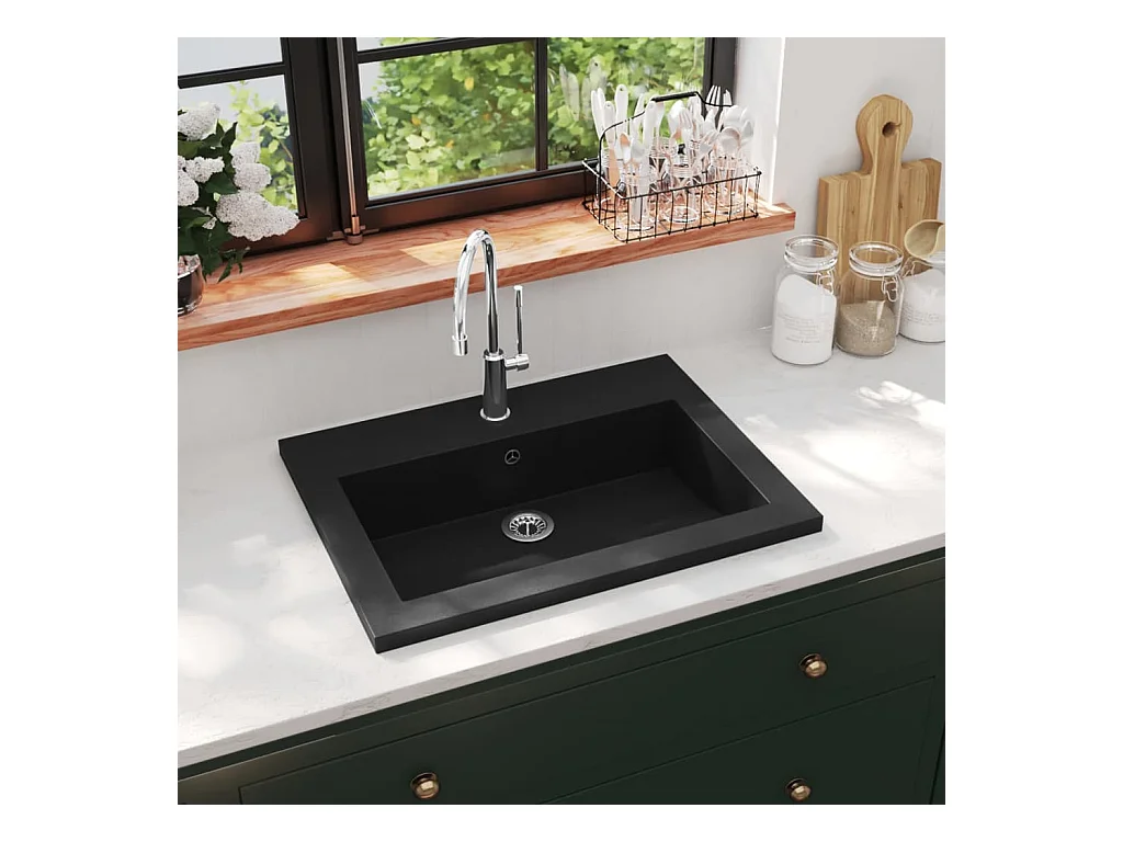 Fregadero de granito 600 x 450 x 120 mm Negro
