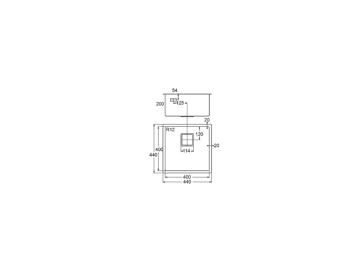 Fregadero de un seno en inox Francia, 20 cm(alto) 44 cm(ancho) 44 cm(largo)