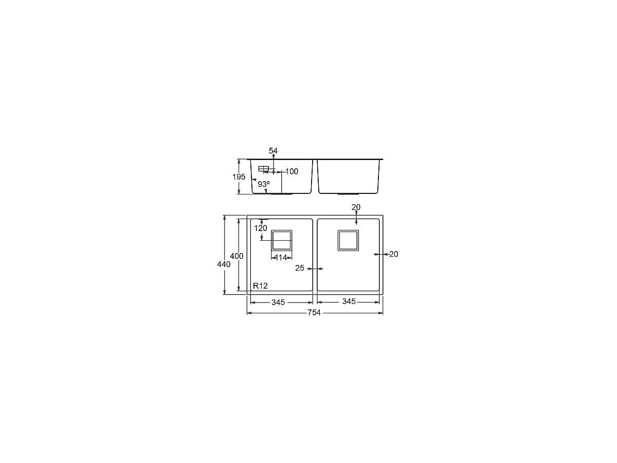 Fregadero de 2 senos en negro Japón, 19,5 cm(alto) 75 cm(ancho) 44 cm(largo)