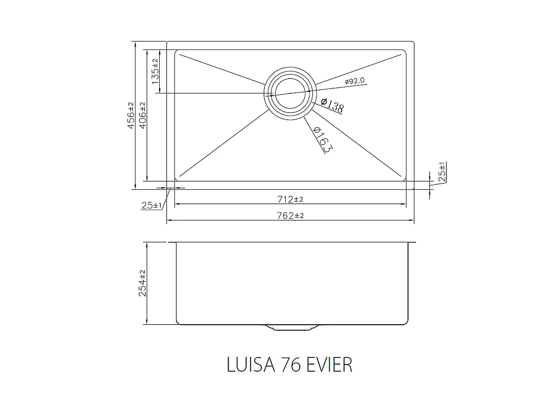 Fregadero de un seno en inox Israel, 77,6 cm(ancho)43,6 cm(largo)