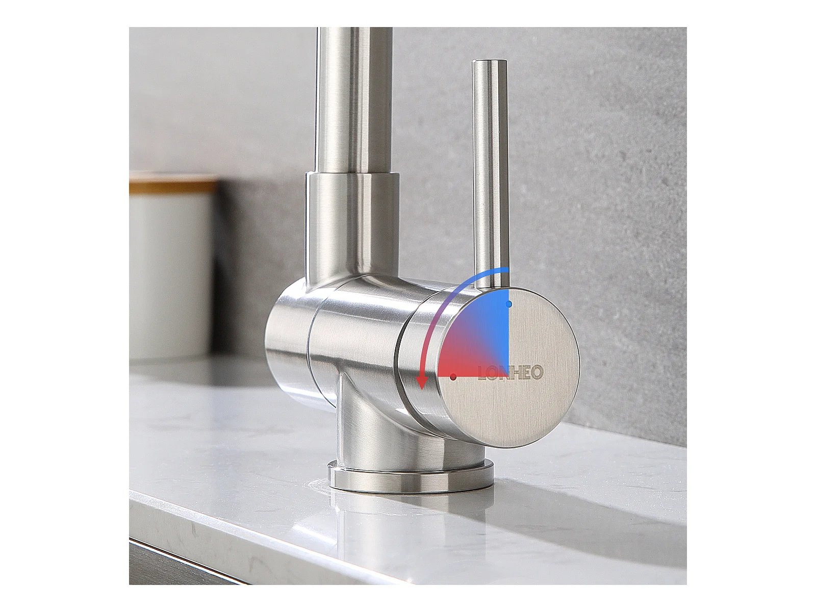 LOnheo Max Grifo cocina giratorio en forma de U 360° Mezclador de fregadero agua fría y caliente de acero inoxidable con palanca desmotable,dorado