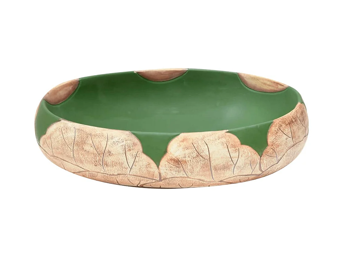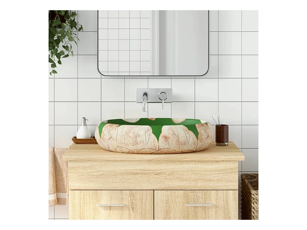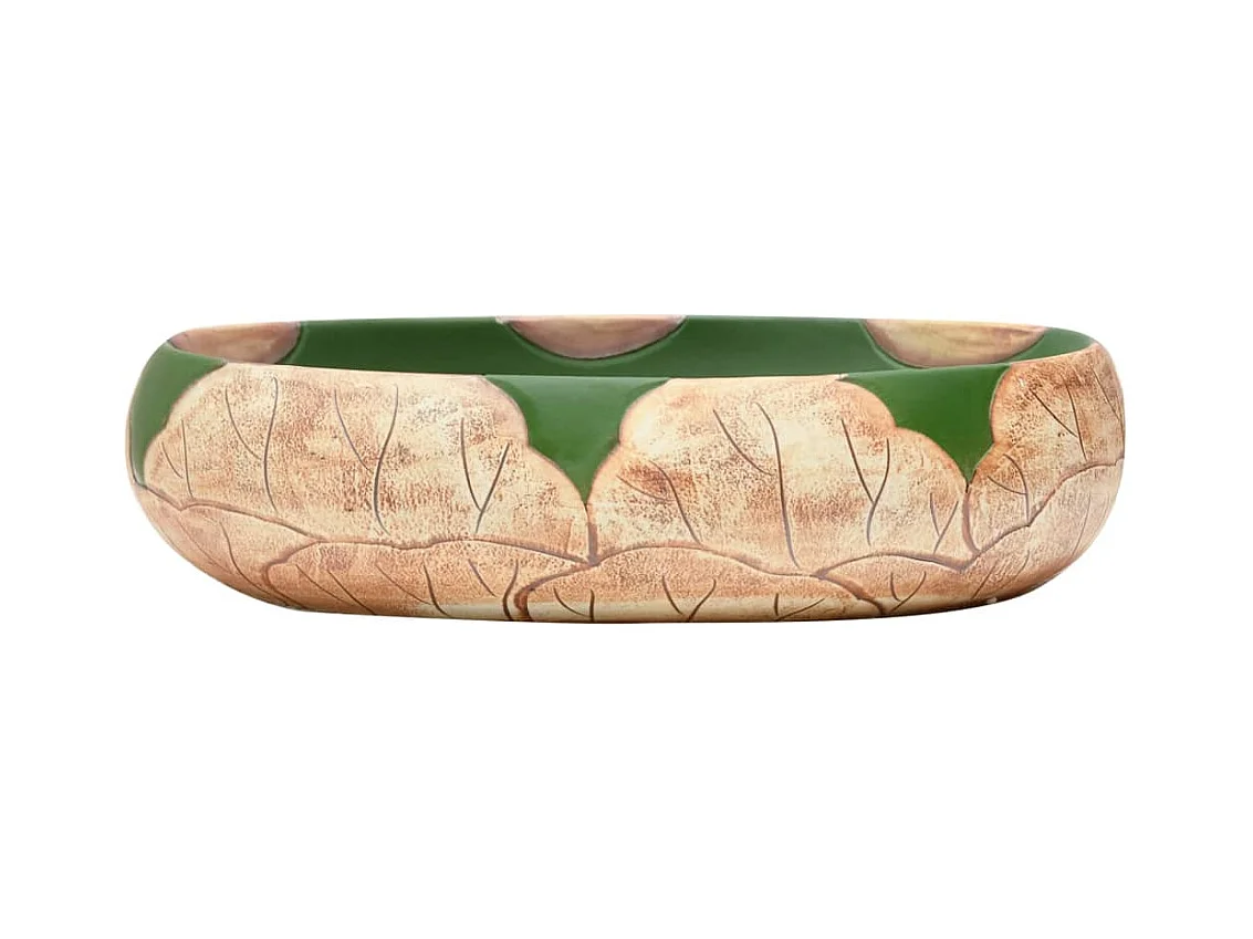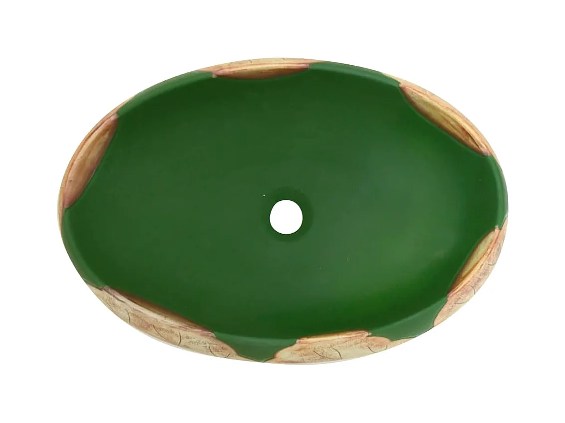 Fregadero sobre encimera ovalado verde y marrón 59x40x15 cm cerámico