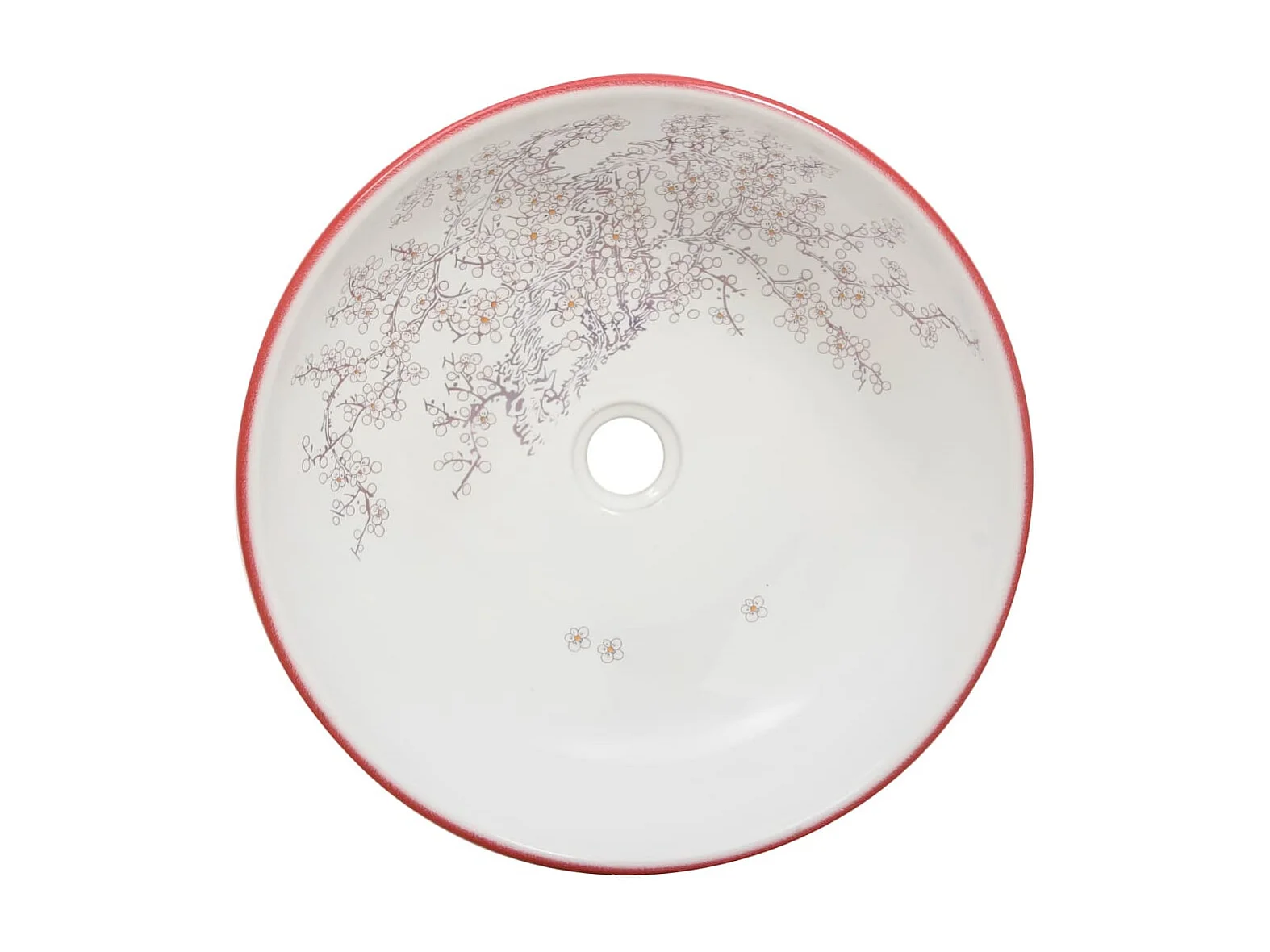 Fregadero sobre encimera redondo blanco y rojo Φ41x14 cm cerámico