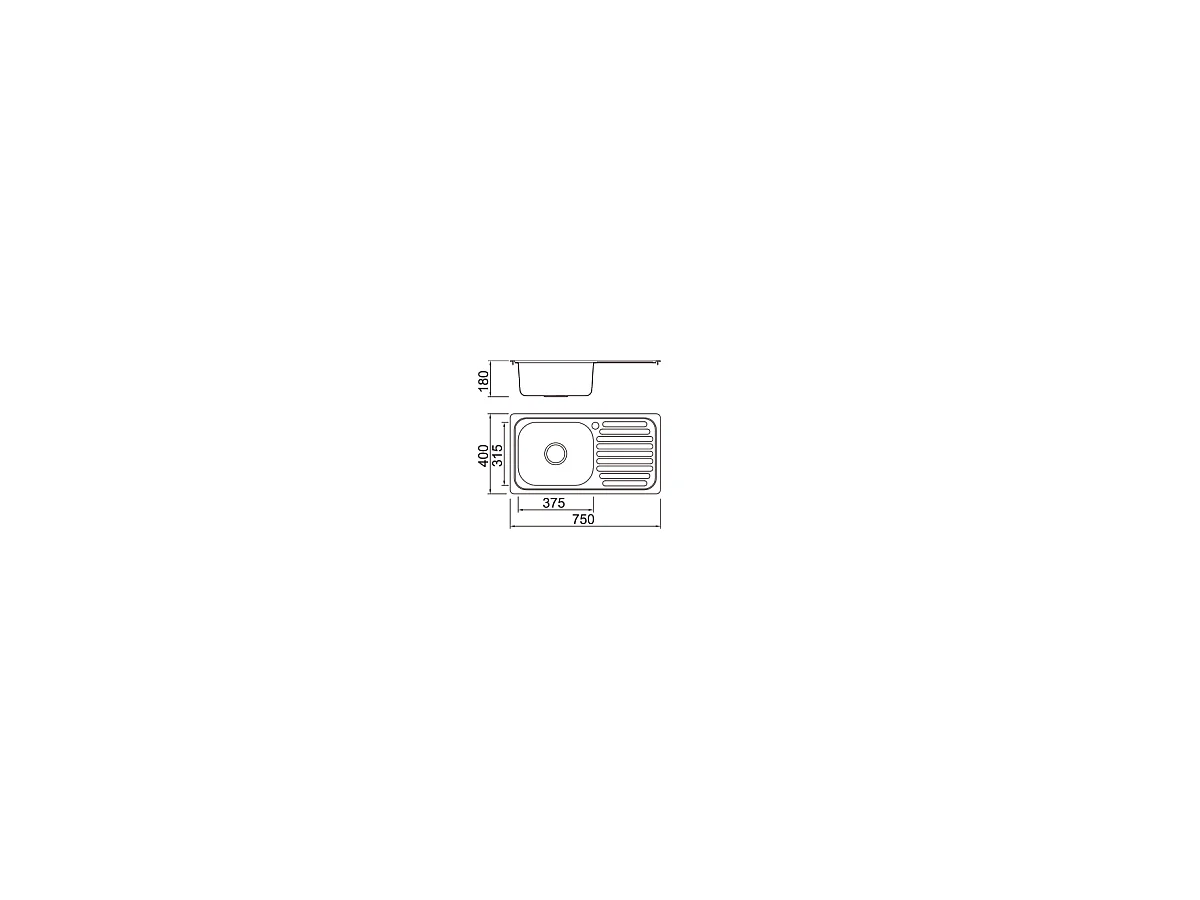 Fregadero con escurridor a la izquierda con orificio grifo, 18 cm(alto)80 cm(ancho)40 cm(l