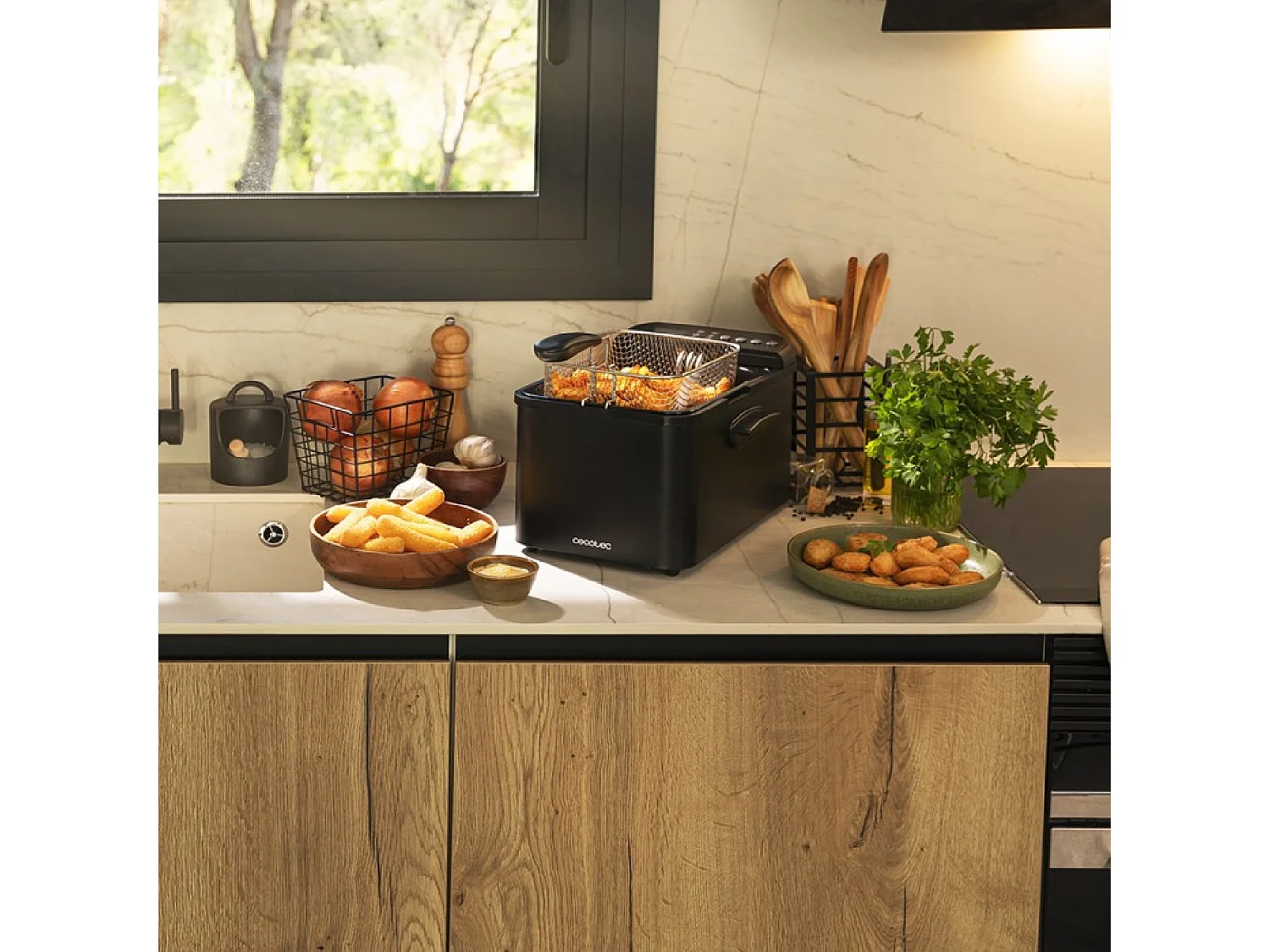 Freidora de aire Cecotec Cecofry Bombastik 6000 Full 1700W 6L 12 modos de cocinado con accesorios negro