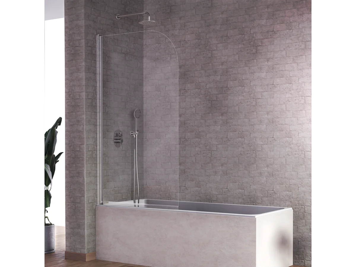 Mampara de bañera en forma media luna con un toallero 400mm, vidrio templado con tratamiento antical 8 mm (980-1005)x1500mm