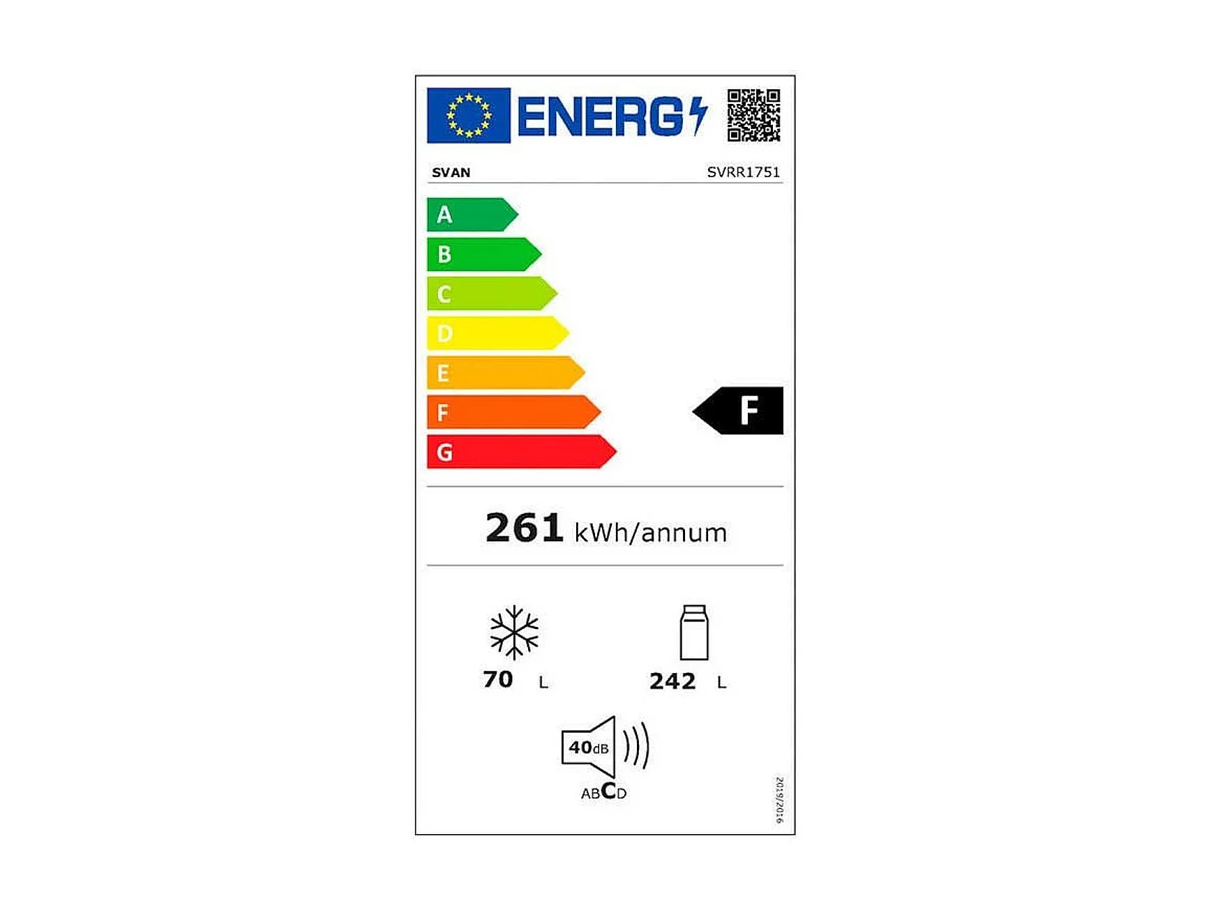 Frigorífico 2 puertas Svan SVRR1751 cíclico 40dB 242L F rojo 179x60,5x70,1 cm