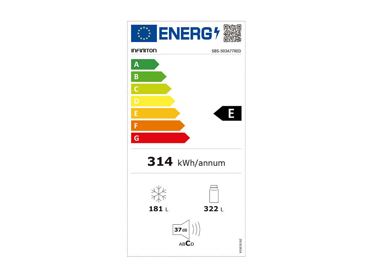 Frigorífico americano Infiniton SBS-503A77XED Total No Frost 503L dispensador de agua E inox 176,8 cm