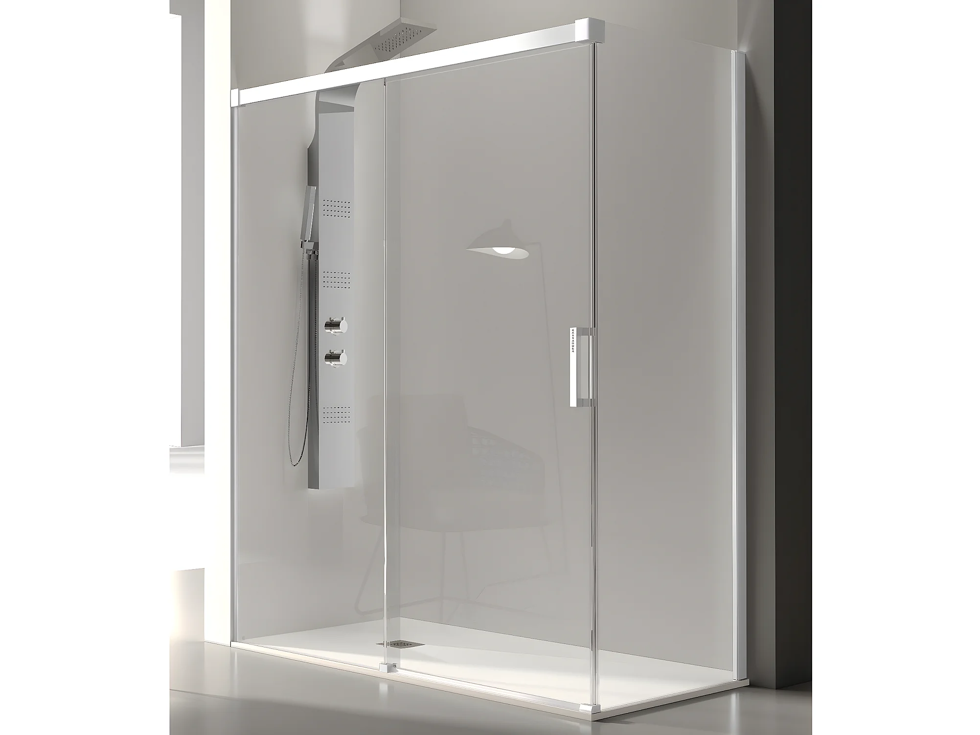 Frontal de ducha + Puerta Corredera 145 cm GLASÉ perfil Cromado Pared lateral: 76 - 79 cm