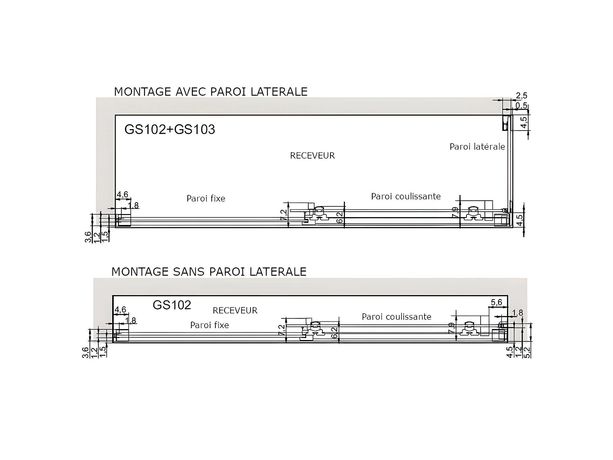 Juego de 2 paneles de ducha - Ancho 90 x Ancho 120 x Alt. 210 cm