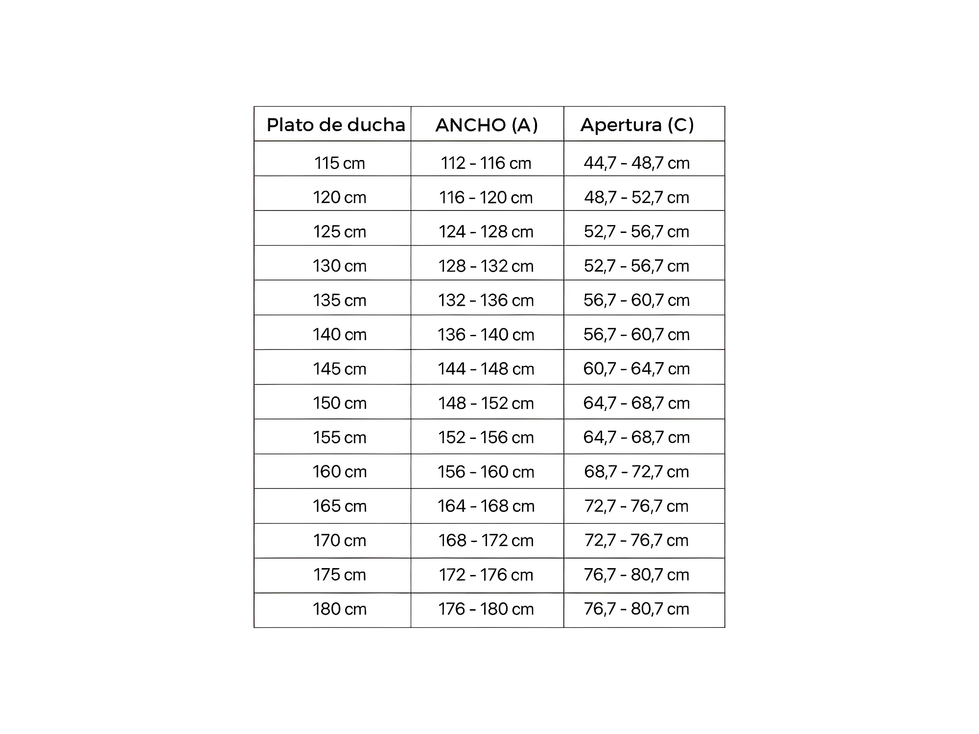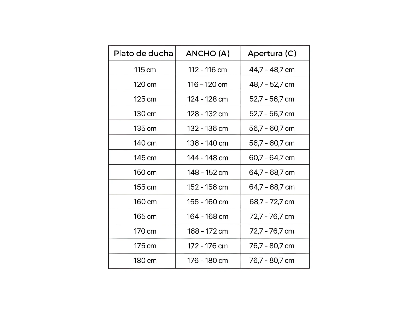 Frontal de ducha 2 Fijos Lateral Fijo : 77 - 79 cm + 2 Puertas Correderas 145 cm 145 cm BELLA Lateral Fijo : 77 - 79 cm