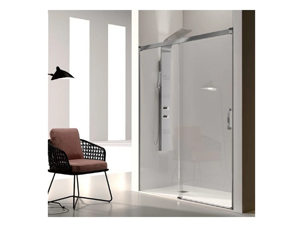 Frontal de ducha + Puerta Corredera 140 cm GLASÉ perfil Cromado Sin pared lateral
