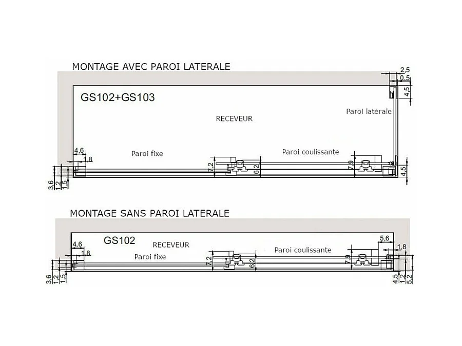 Juego de 2 paneles de ducha - Ancho 90 x Ancho 120 x Alt. 210 cm