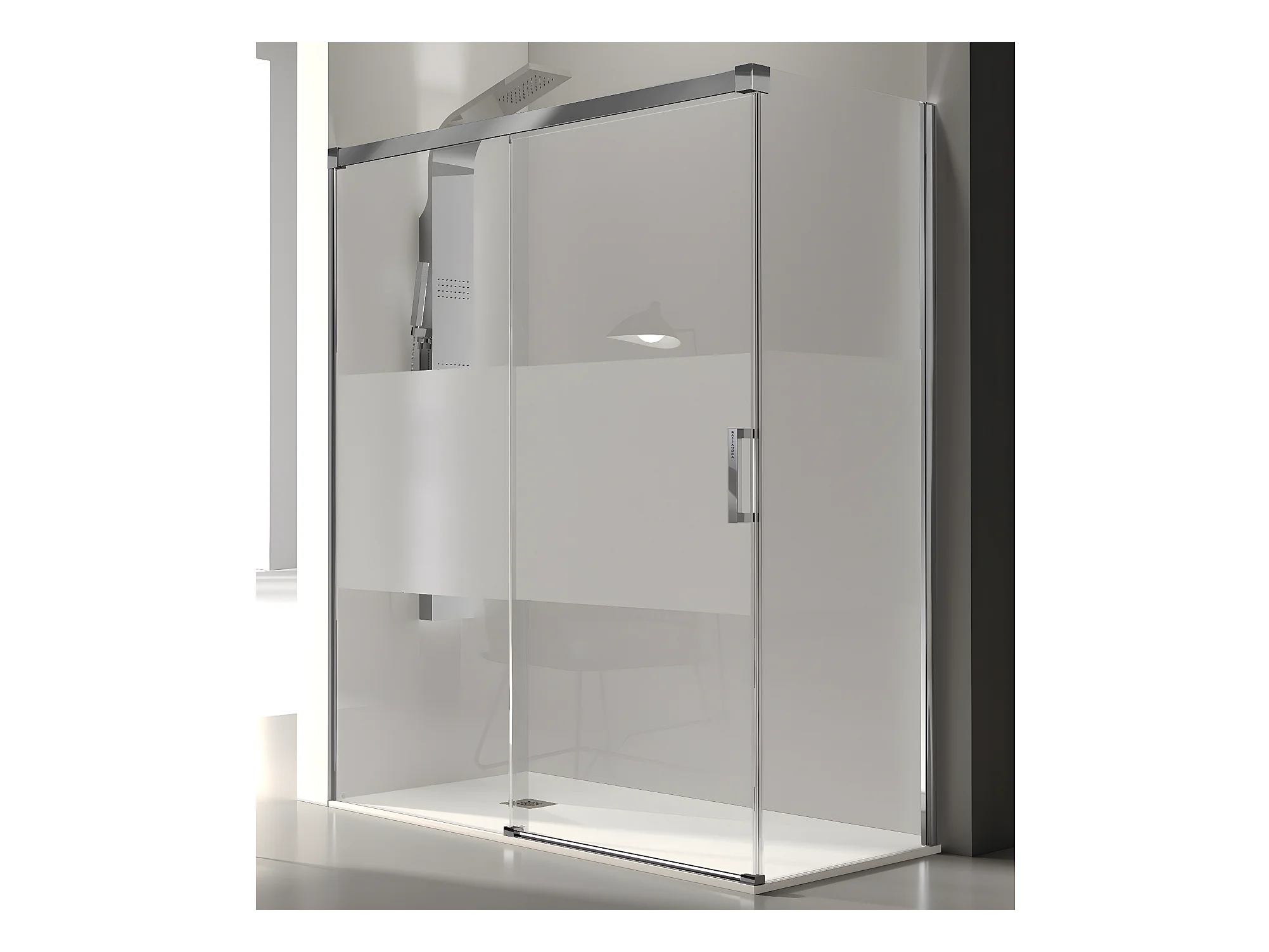 Frontal de ducha + Puerta Corredera 115 cm GLASÉ perfil Cromado con Cristal serigrafiado Pared lateral: 66 - 69 cm