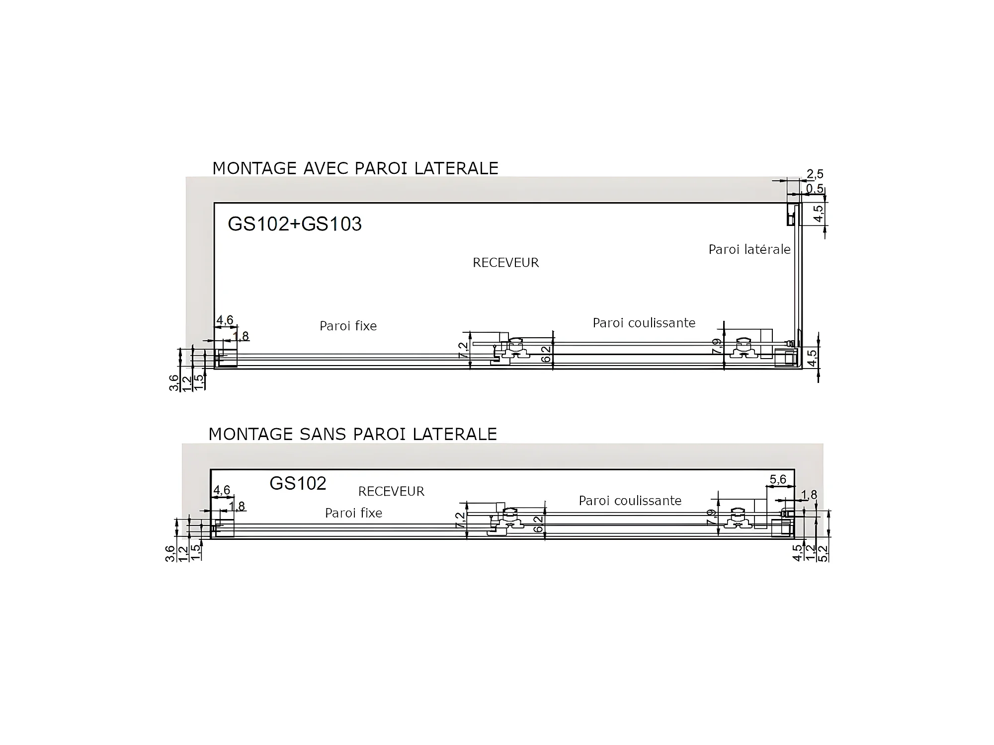 Juego de 2 paneles de ducha - Ancho 90 x Ancho 120 x Alt. 210 cm