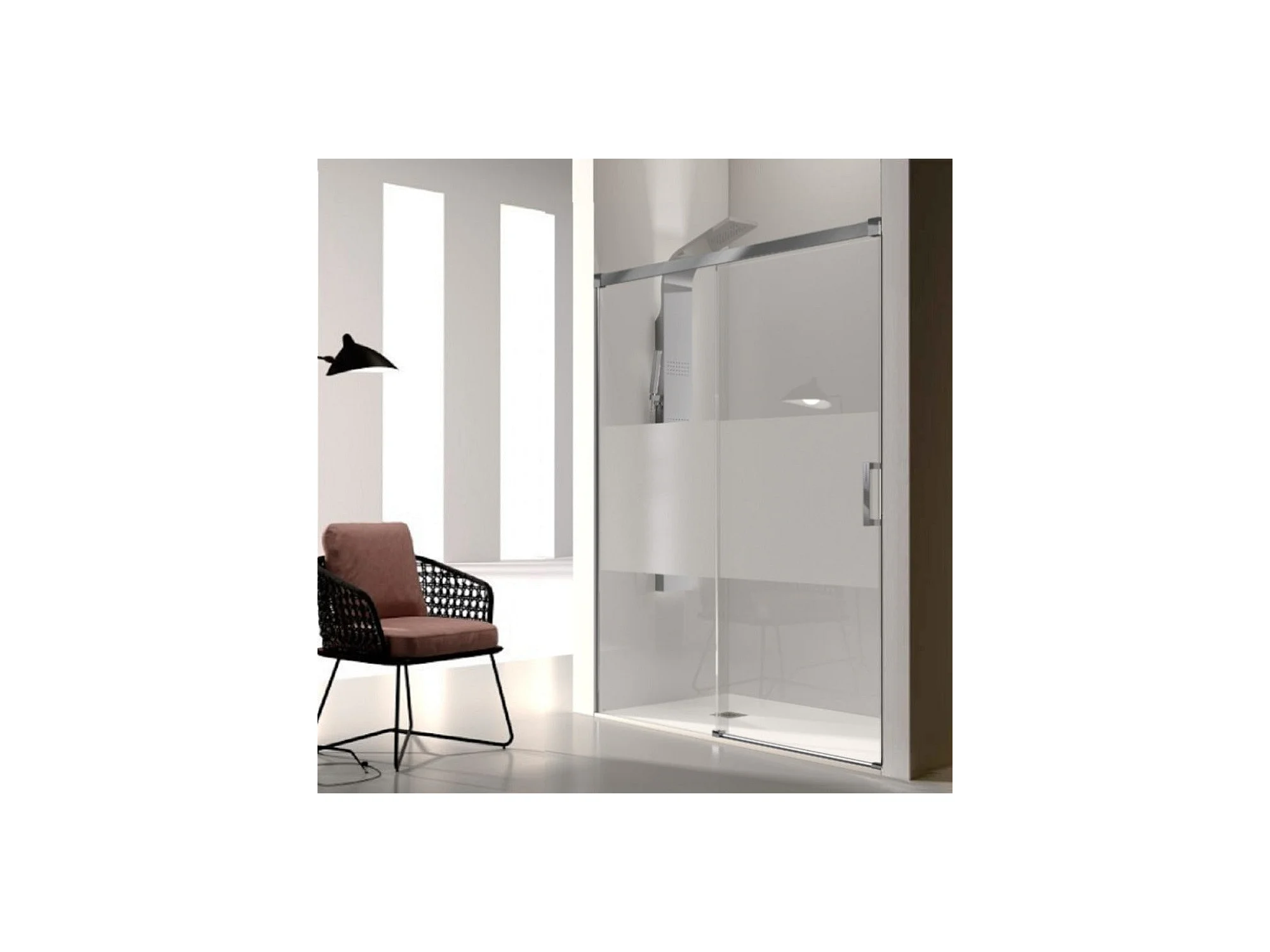 Frontal de ducha + Puerta Corredera 170 cm GLASÉ perfil Cromado con Cristal serigrafiado Pared lateral: 66 - 69 cm