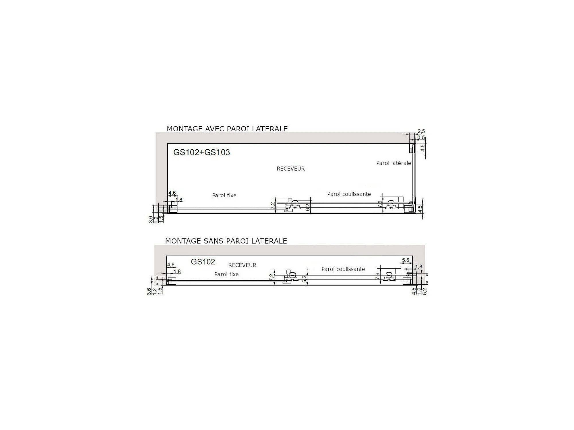 Frontal de ducha 2 Fijos Lateral Fijo : 77 - 79 cm + 2 Puertas Correderas 175 cm 175 cm BELLA Lateral Fijo : 77 - 79 cm