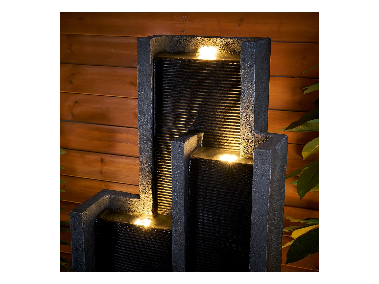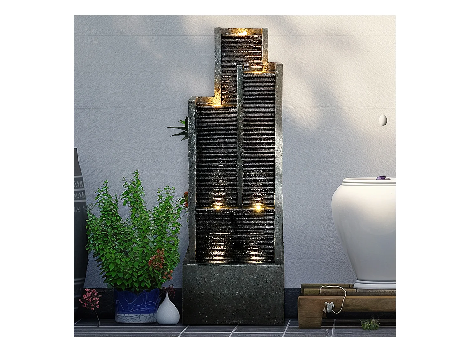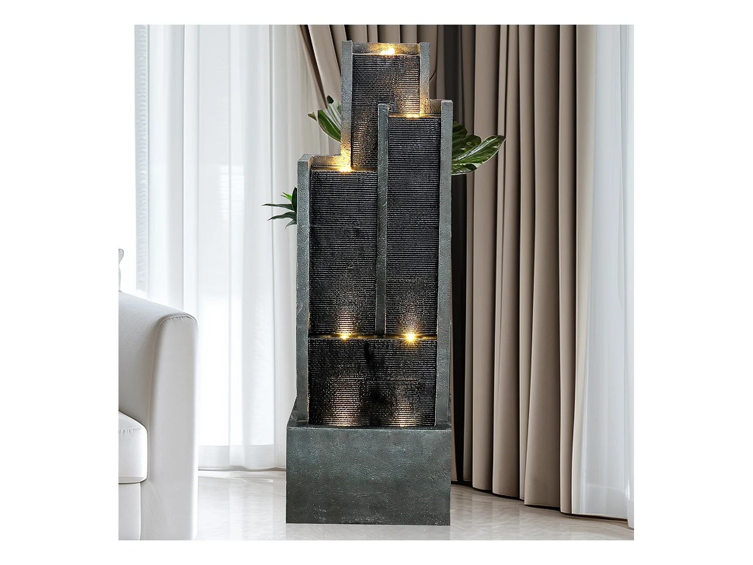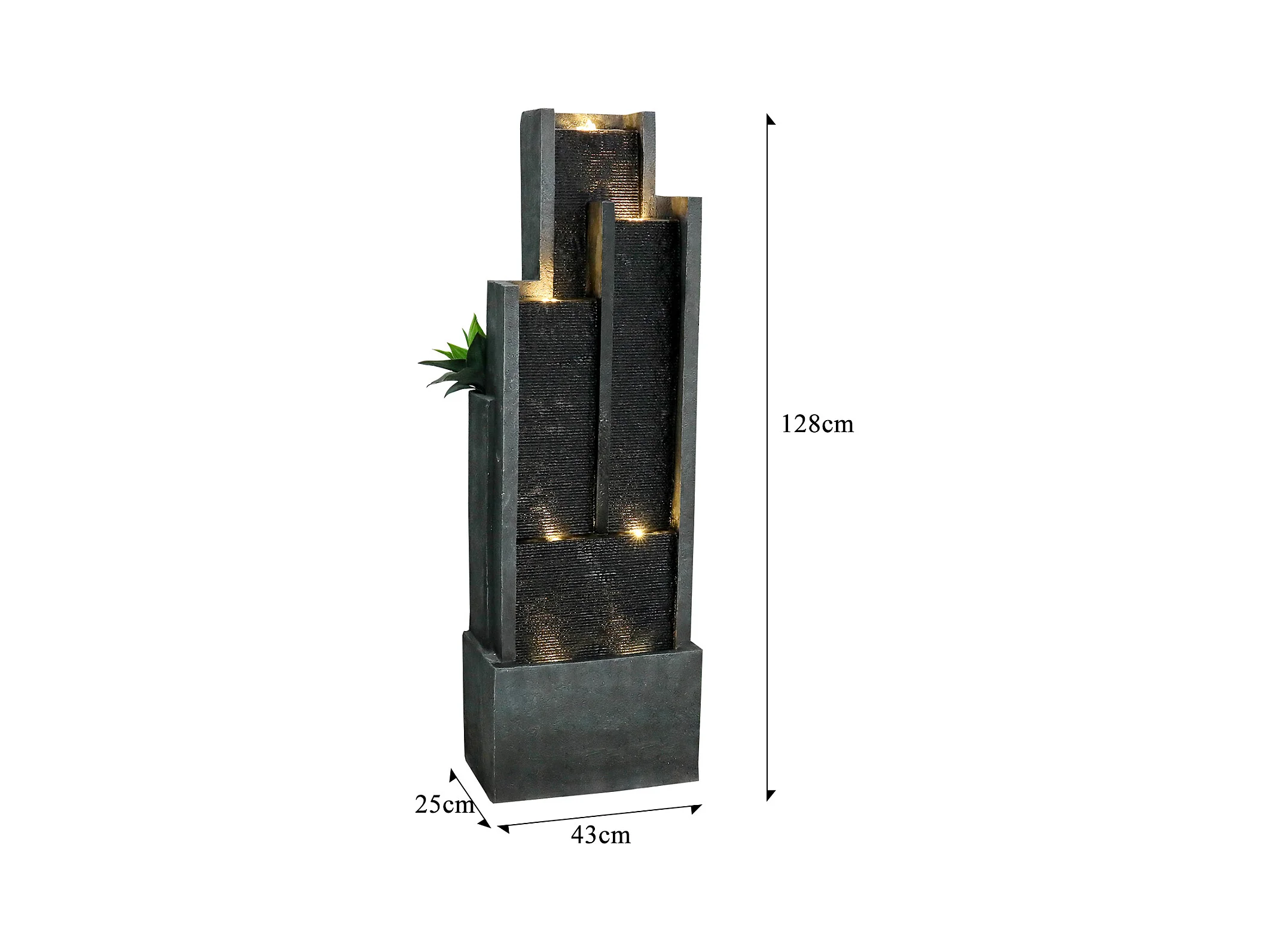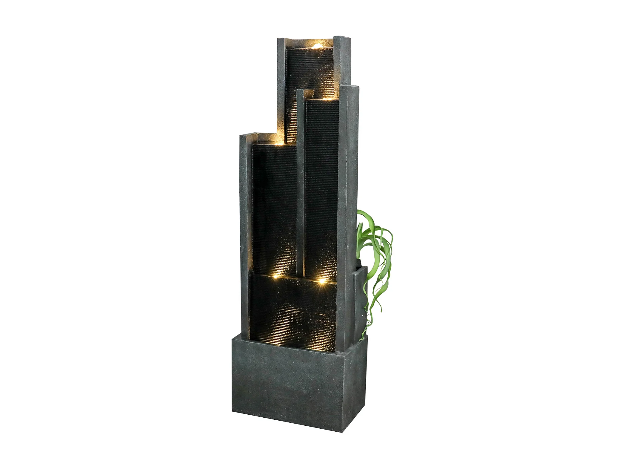 Fuente de agua de pared moderna, diseño elegante, resina sintética, color negro y gris, con iluminación LED y efecto relajante (43x25x128 cm)