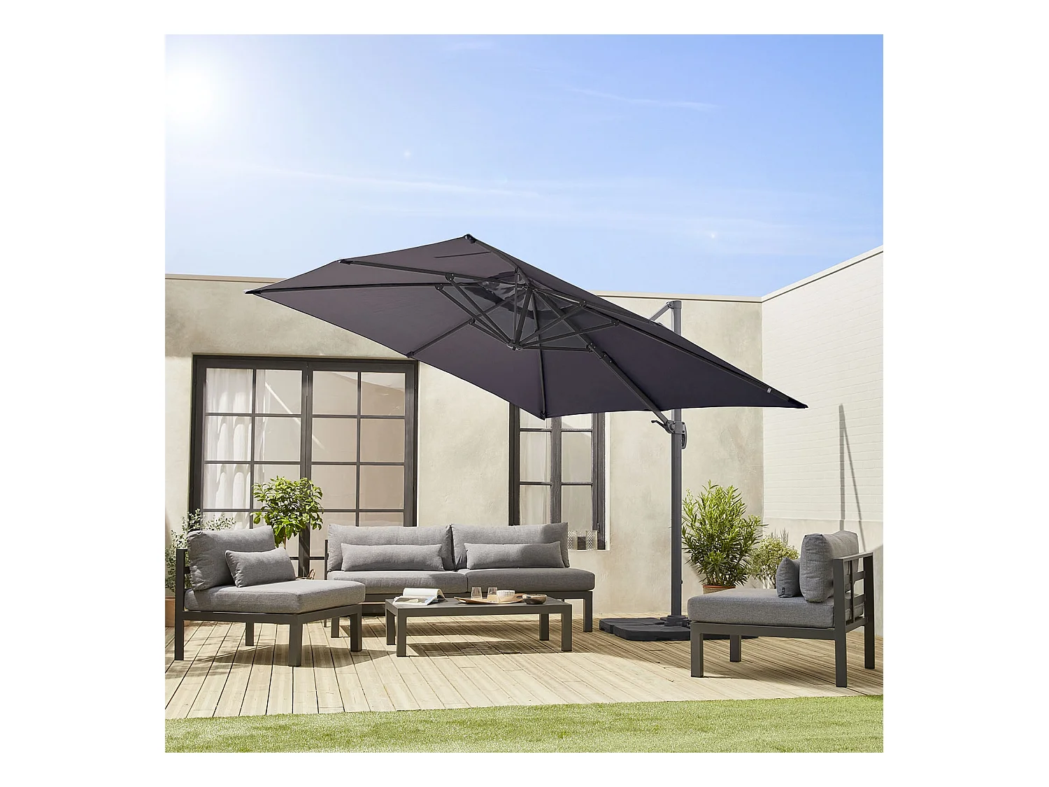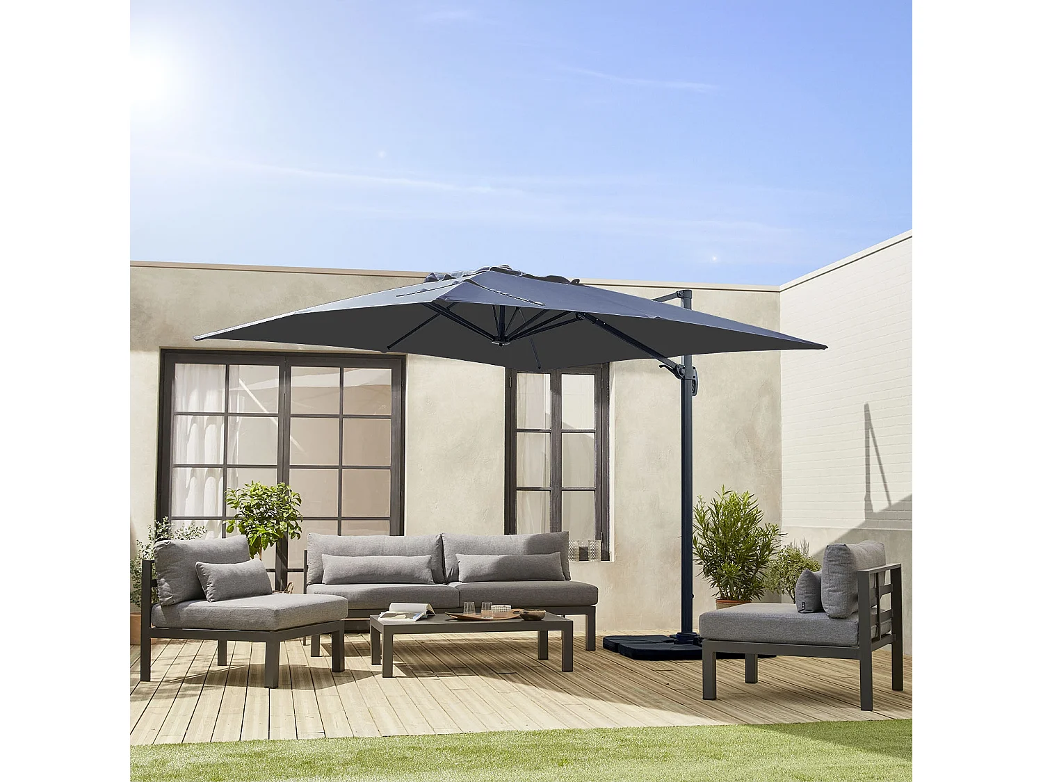 Lona de 3x3m sombrilla cuadrada desplazada gris