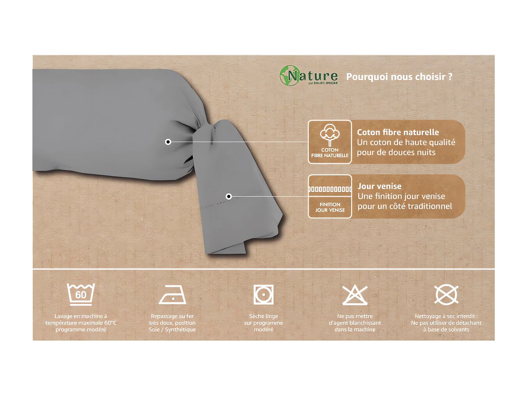 Funda de Almohada de Algodón Percal 85x185cm Blanco Certificado Oeko-Tex