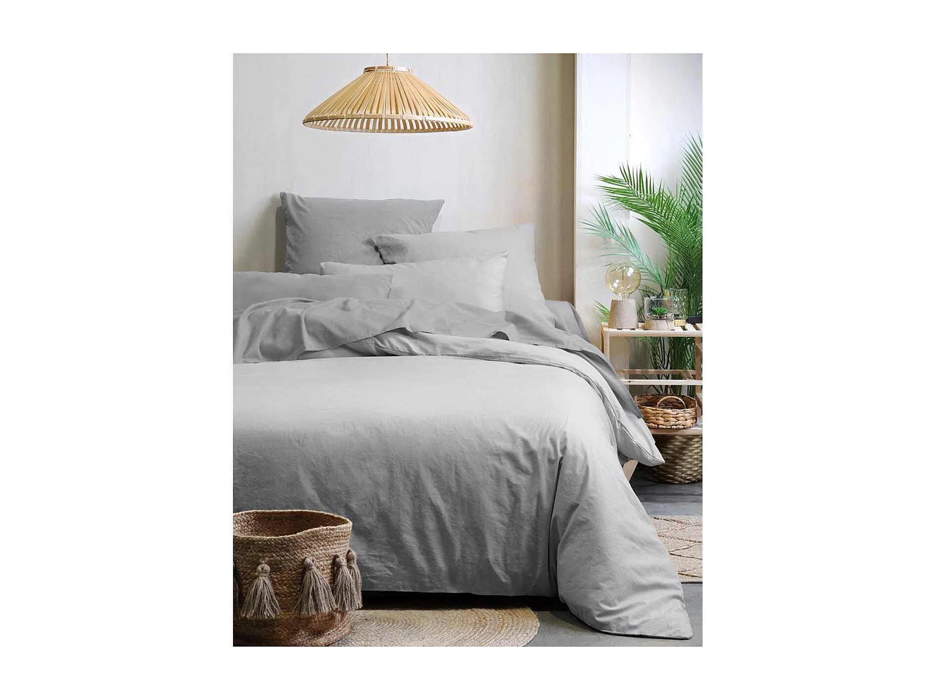 Funda de almohada percal de algodón 65x65 cm gris CAMILLE, de songe de camille