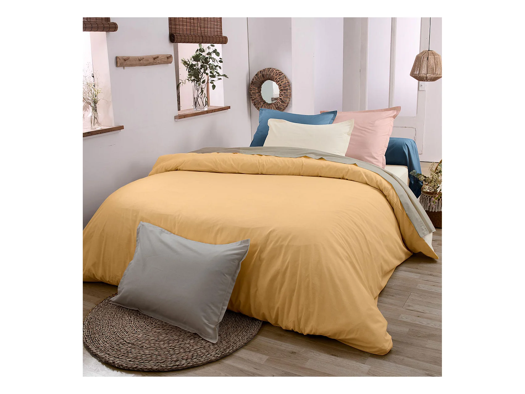Funda nórdica de algodón de 57 hilos 240x220 cm UNI mostaza, de Soleil d'Ocre