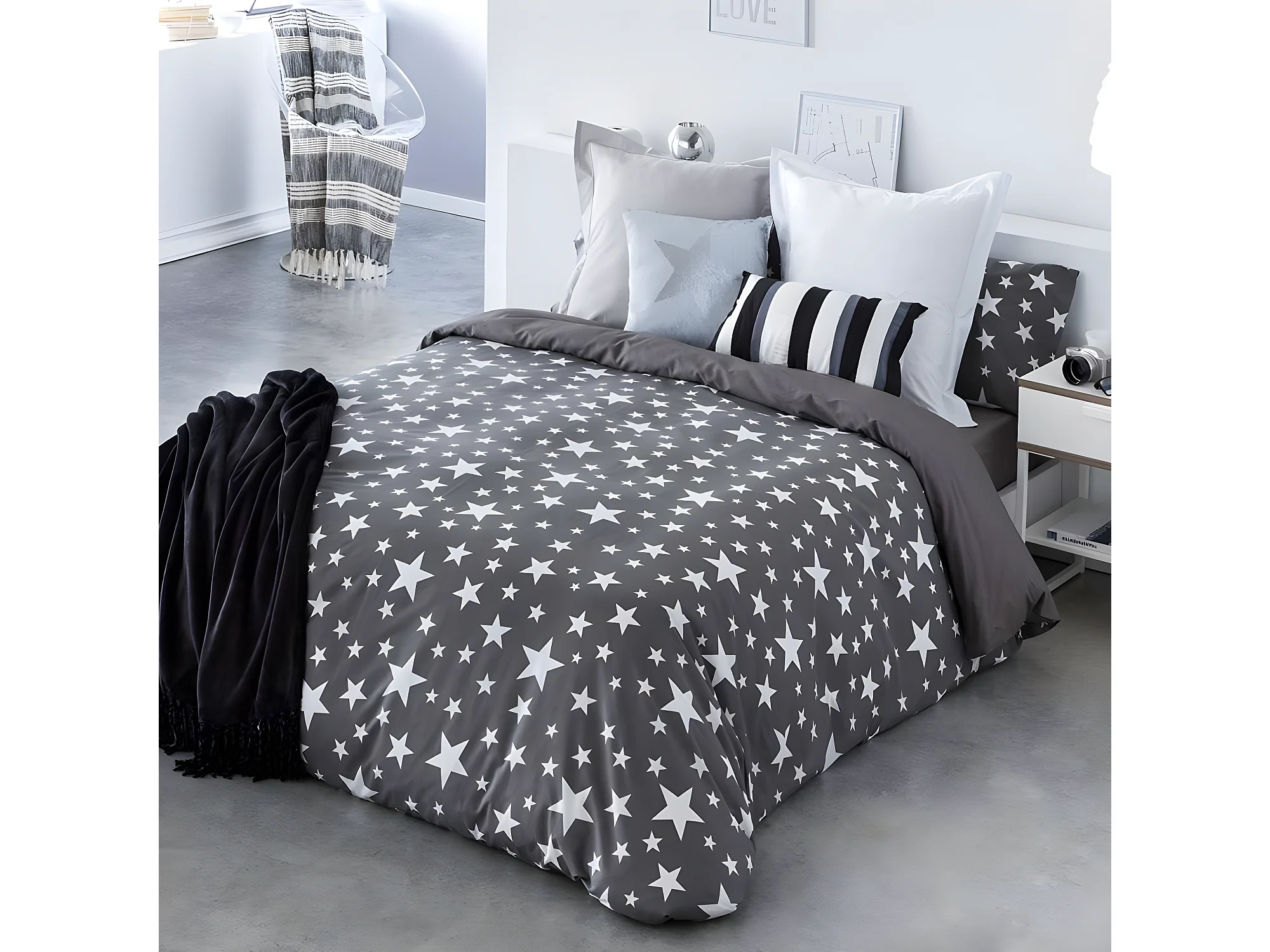 Funda nórdica GIVETTE algodón gris oscuro 280x260 Cama de 200