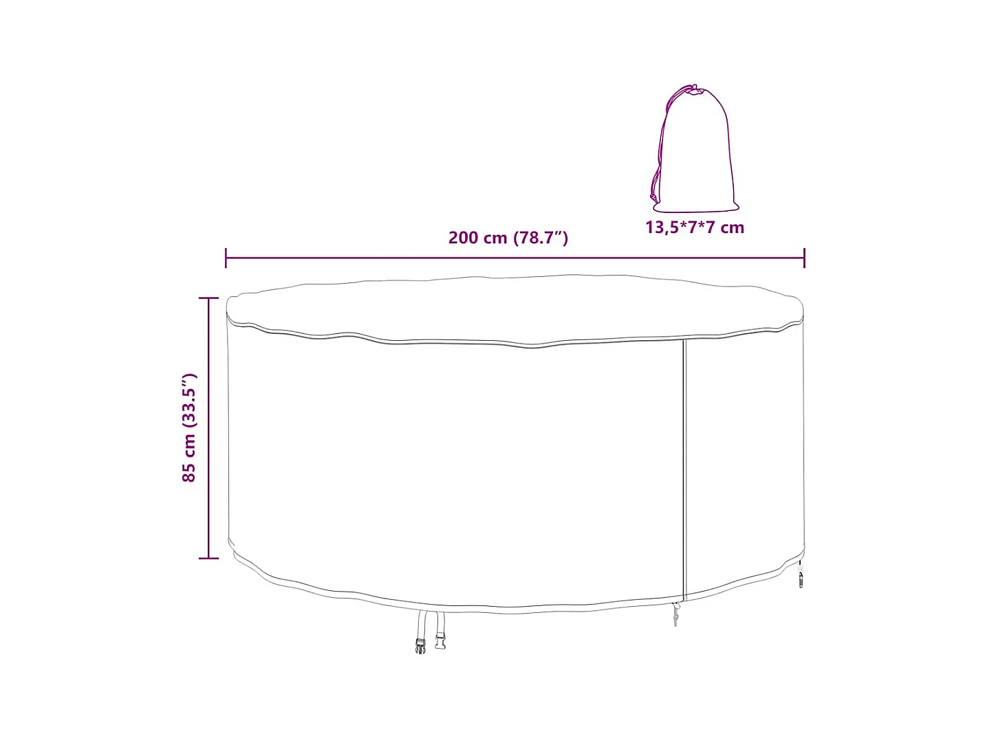 Funda para muebles de exterior 200 x 200 x 85 cm tejido 600D