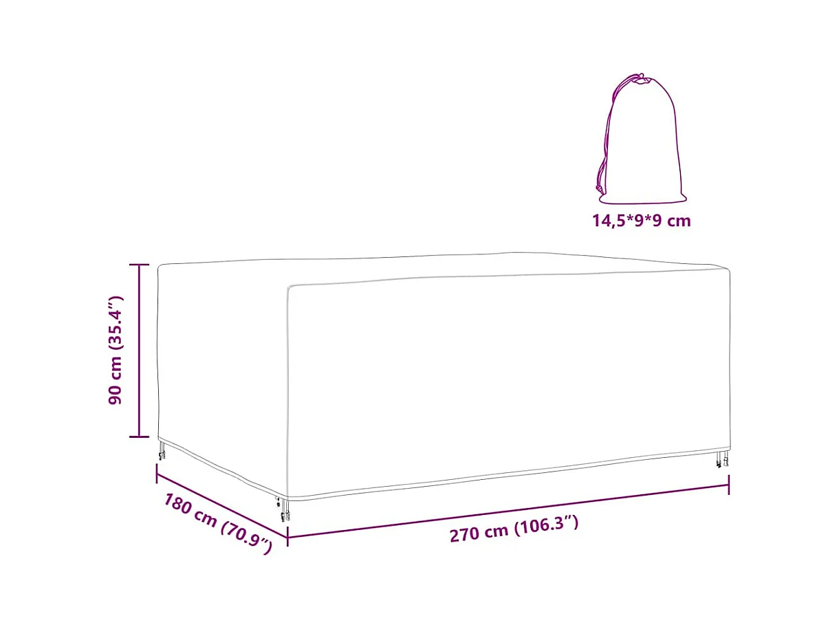 Funda para muebles de jardín con 12 ojales, 270 x 180 x 90 cm, rectangular