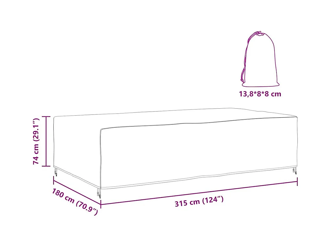 Funda para muebles de jardín 12 ojales 315x180x75cm rectangular
