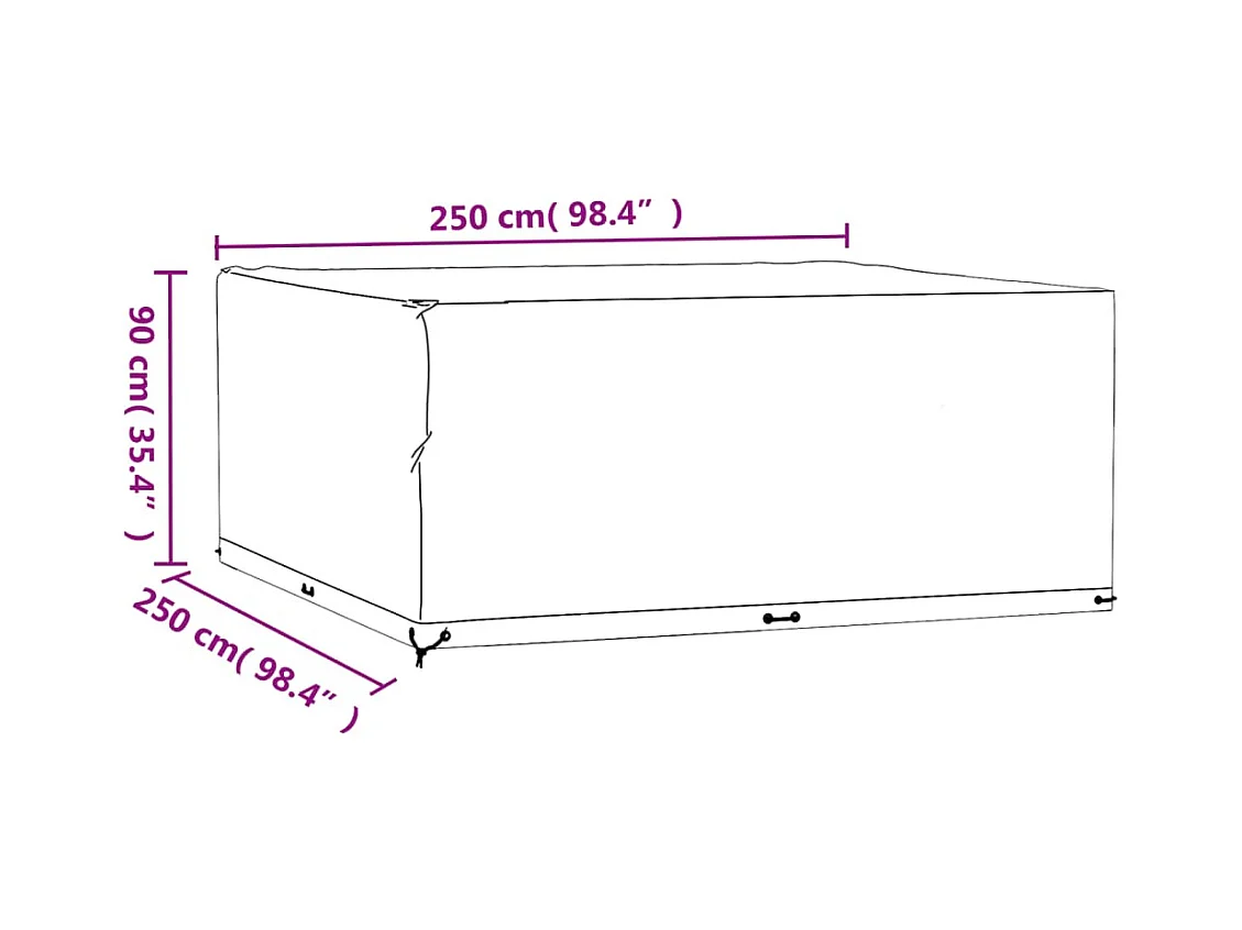 Funda para muebles de jardín 16 ojales 250x250x90 cm cuadrada