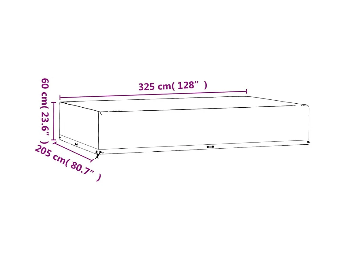 Funda para muebles de jardín 16 ojales 325x205x60cm rectangular