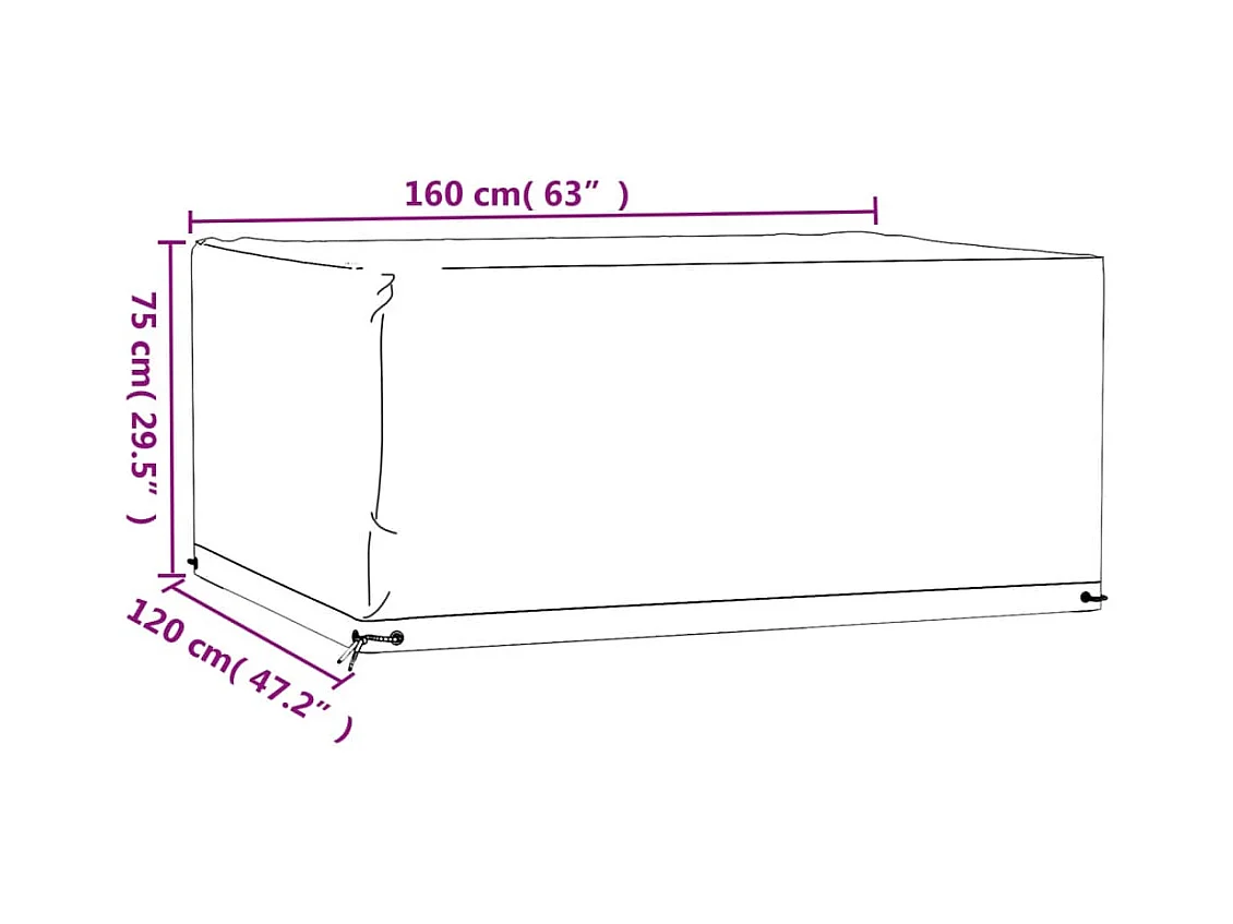 Funda para muebles de jardín con 8 ojales, 160x120x75 cm, rectangular