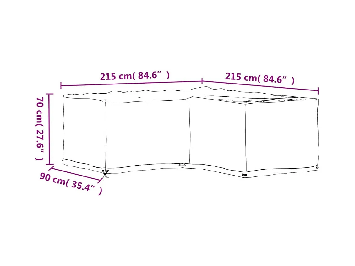 Funda para muebles de jardín en forma de L con 16 ojales 215x215x90cm