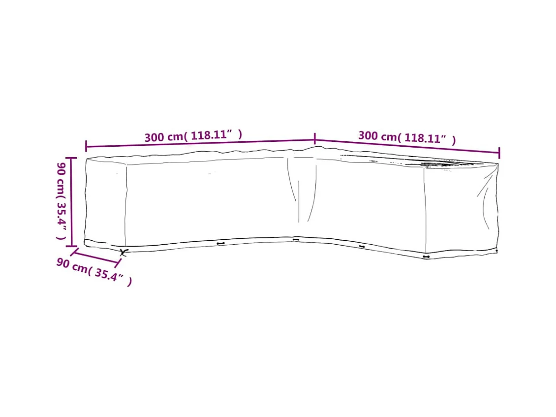 Funda para muebles de jardín en forma de L con 20 ojales 300x300x90cm
