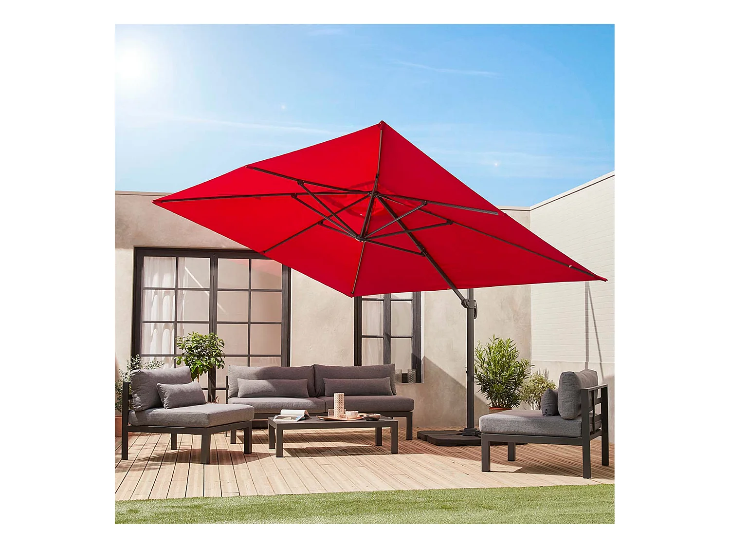Sombrilla desplazada con doble techo rojo burdeos 250x250 cm