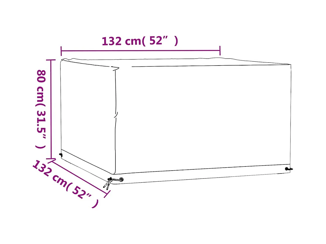 Funda para muebles de jardín con 8 ojales, 132x132x80 cm, cuadrada