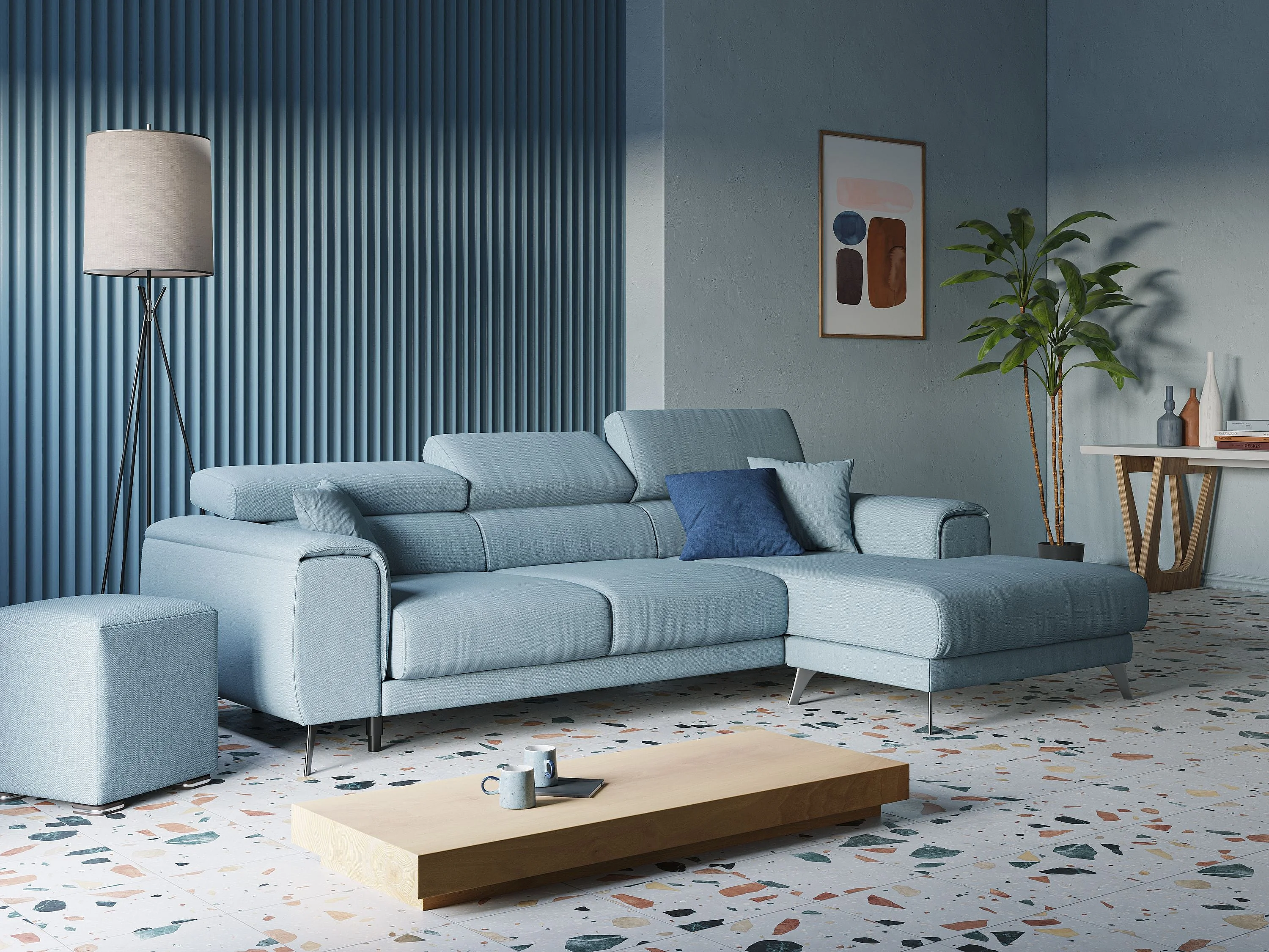 Fusion Sofá esquinero con asientos desmontables en tela suave antimanchas 260 cm Derecho Azul Claro