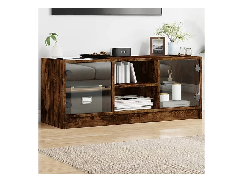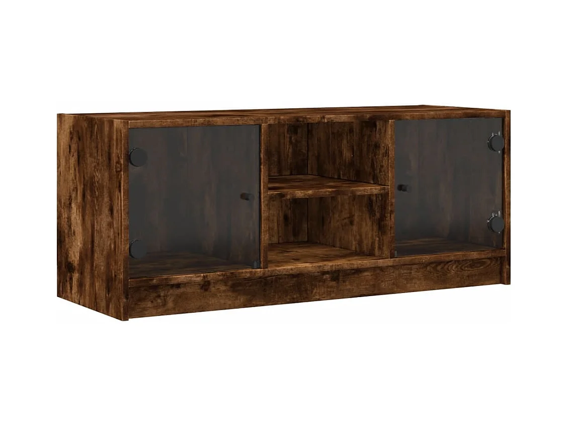 Fyrdir Mueble de TV con puertas de vidrio marrón roble 102x37x42 cm