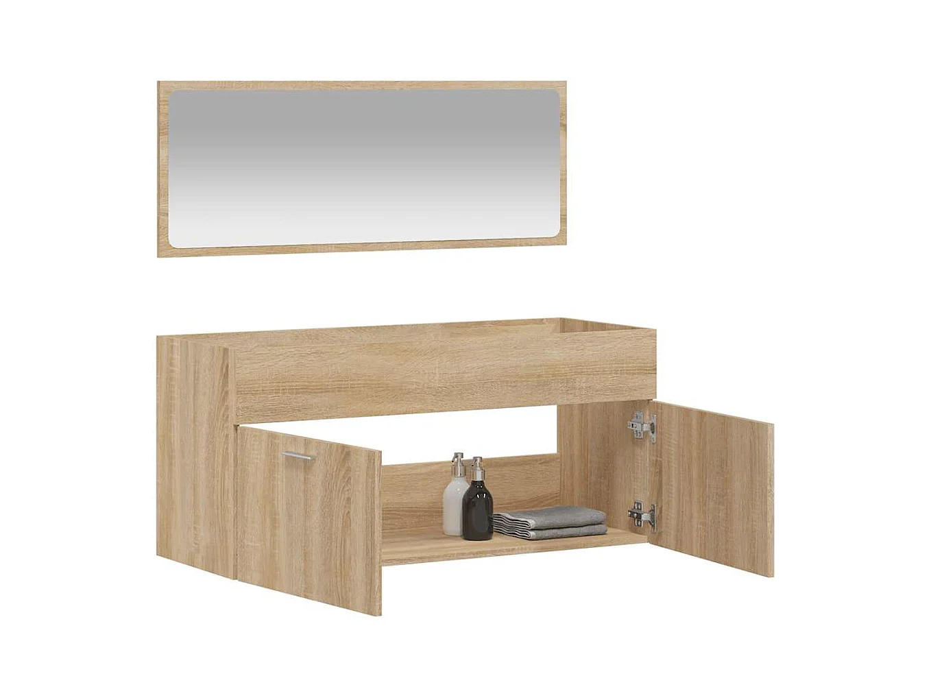 Gabinete de baño con espejo de madera de ingeniería de roble Sonoma