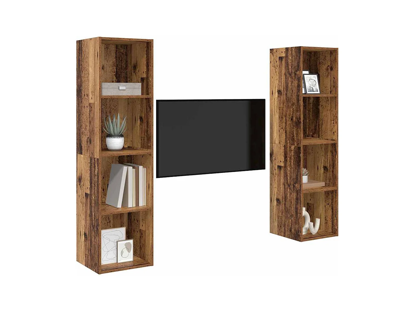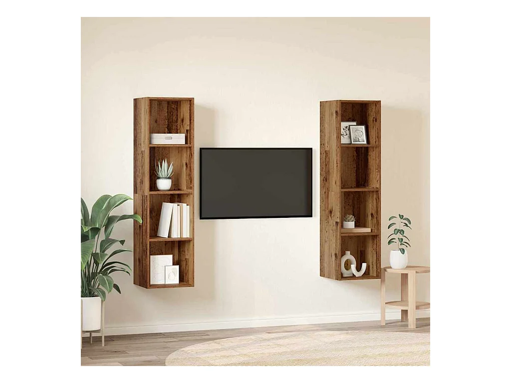 Mueble de TV | Mueble de salón de Pared 2 pcs Madera envejecida 37 x 37 x 72 cm